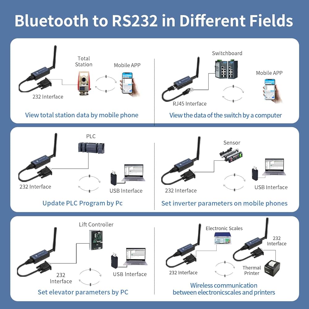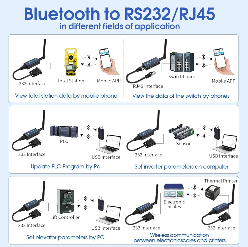 Convert wired connection to wireless connection: RS232 interface devices are converted to wireless Bluetooth connection, more simple and flexible.