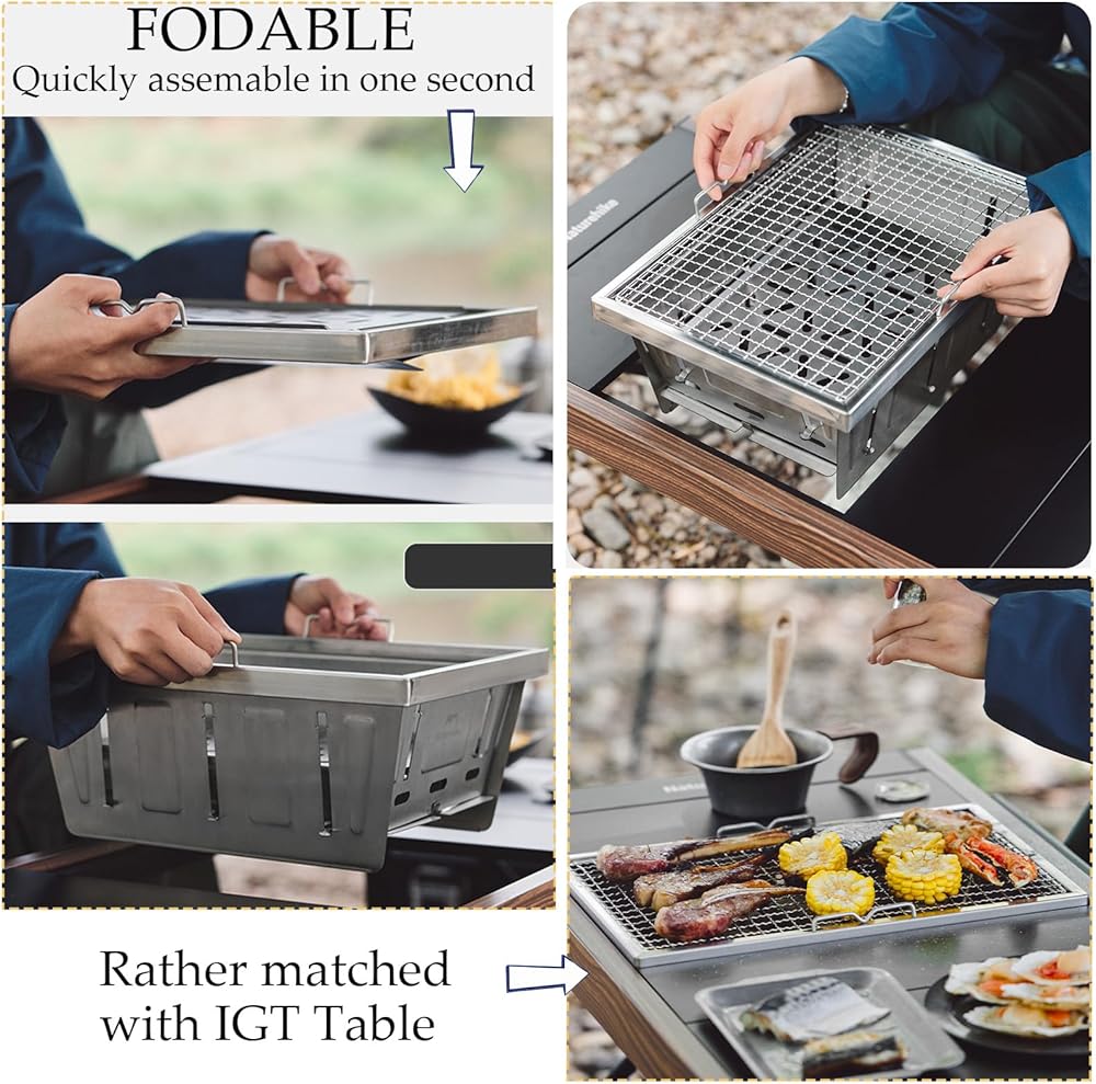 NatureHike Champing Champing Portable Camping ، قابلة للطي الشواء المتاحة للفحم مع طاولة IGT ، شواية مدخن مضغوطة لحفل الفناء الخلفي ، النزهة ، الطهي في الهواء الطلق (شواية الفحم)