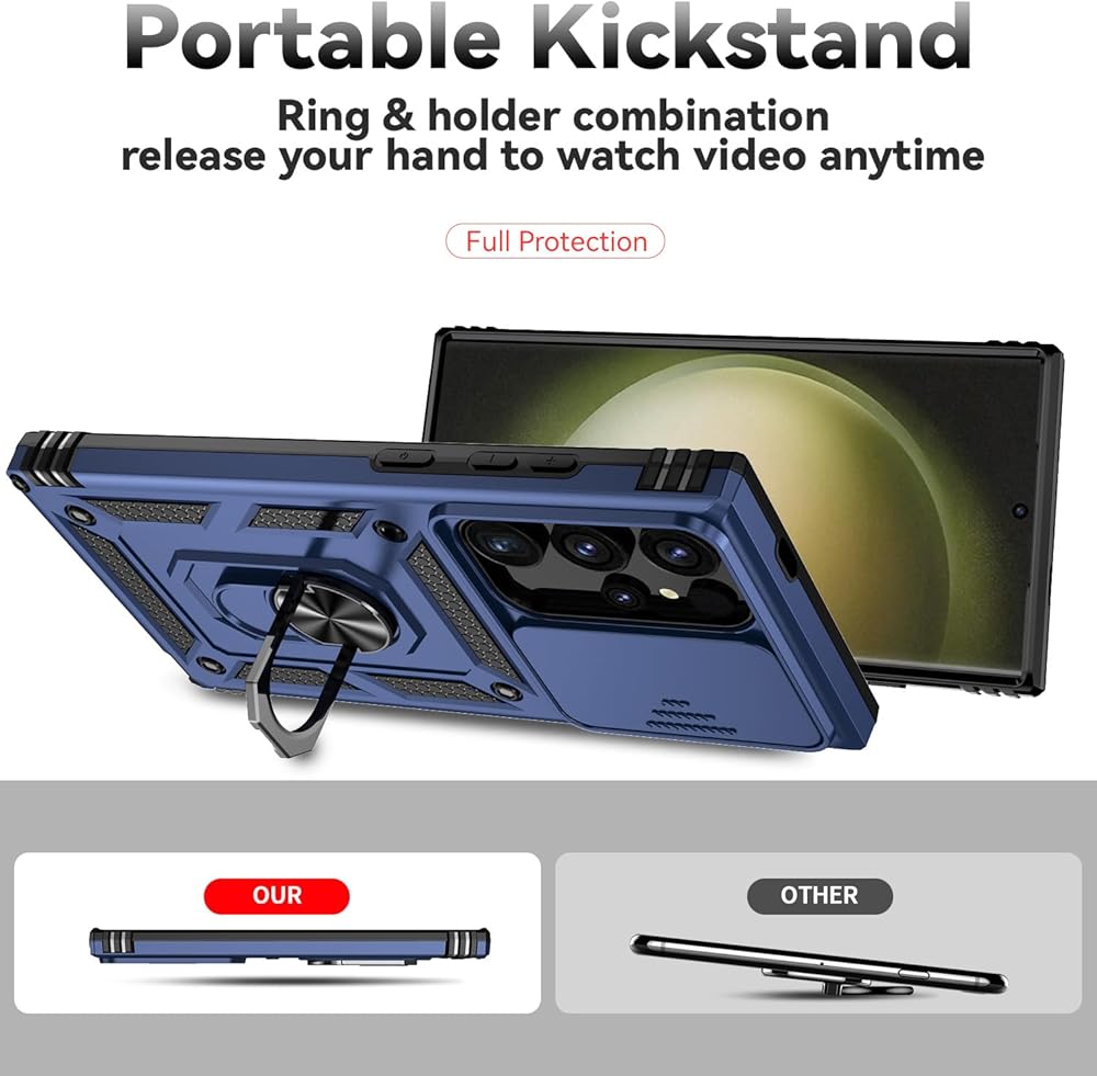 【360 ° Kickstand Magnetic القابل للتدوير】 يمكن أن تدور كيكستاند المعدن الدائري المتقدم 360 درجة ، وسهلة التدوير وثيقة في علبة S24. يمنحك Built in Kickstand الراحة لمشاهدة مقاطع الفيديو والأفلام خالية من اليدين مع الراحة والاستقرار المطلوبين.
