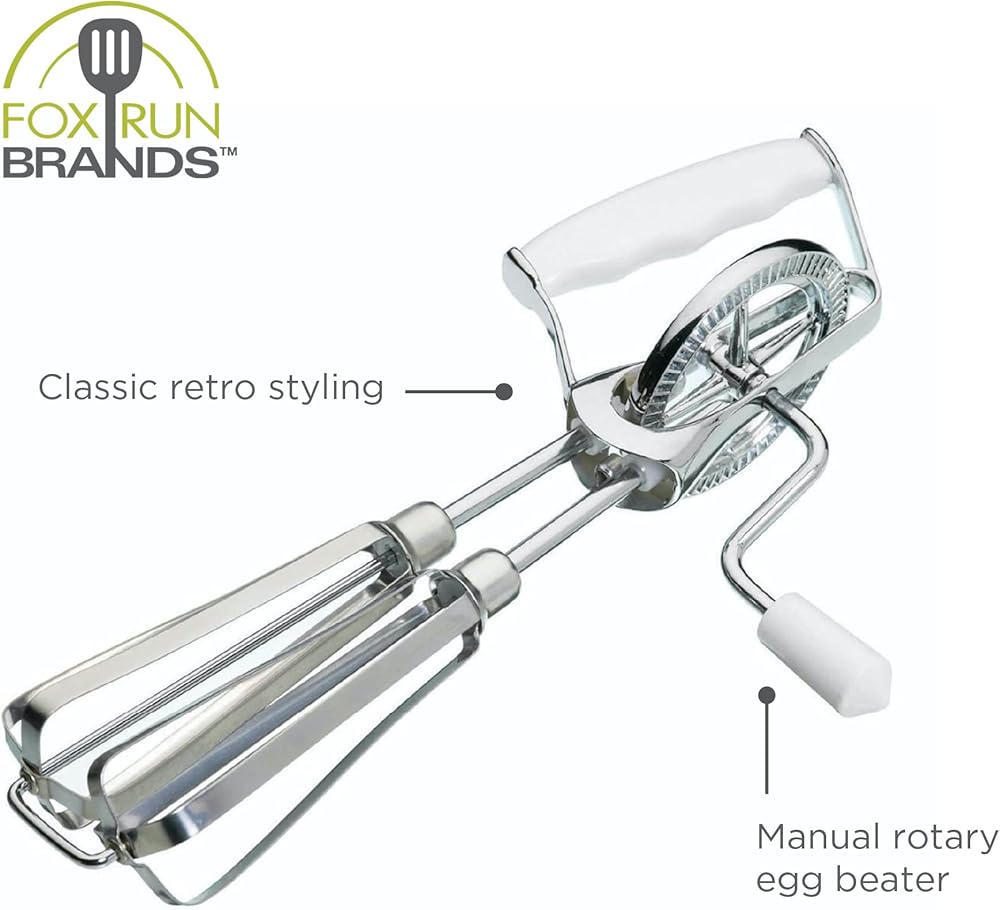 CLASSIC SLEEK DESIGN: The smooth stainless steel beaters, white handle, gears and hand crank on this manual egg beater complements any kitchen environment. This cordless, retro design stands the test of time and allows for efficient mixing no matter the size of the bowl!