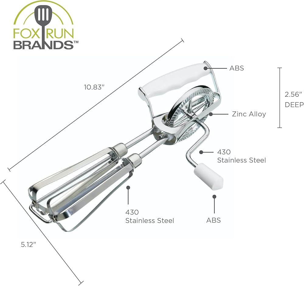 Bake better! Jazz up your baking adventures with this simple and effective mechanical egg beater. Avoid difficult and clunky electronic mixers that take up precious countertop or cabinet space, and use this old fashioned hand held mixer with an updated modern look instead. The sturdy stainless steel construction, efficient gears, white handle, and easy grip hand crank are sure to get the job done with ease and classic style. It's great, portable, and easy to use.