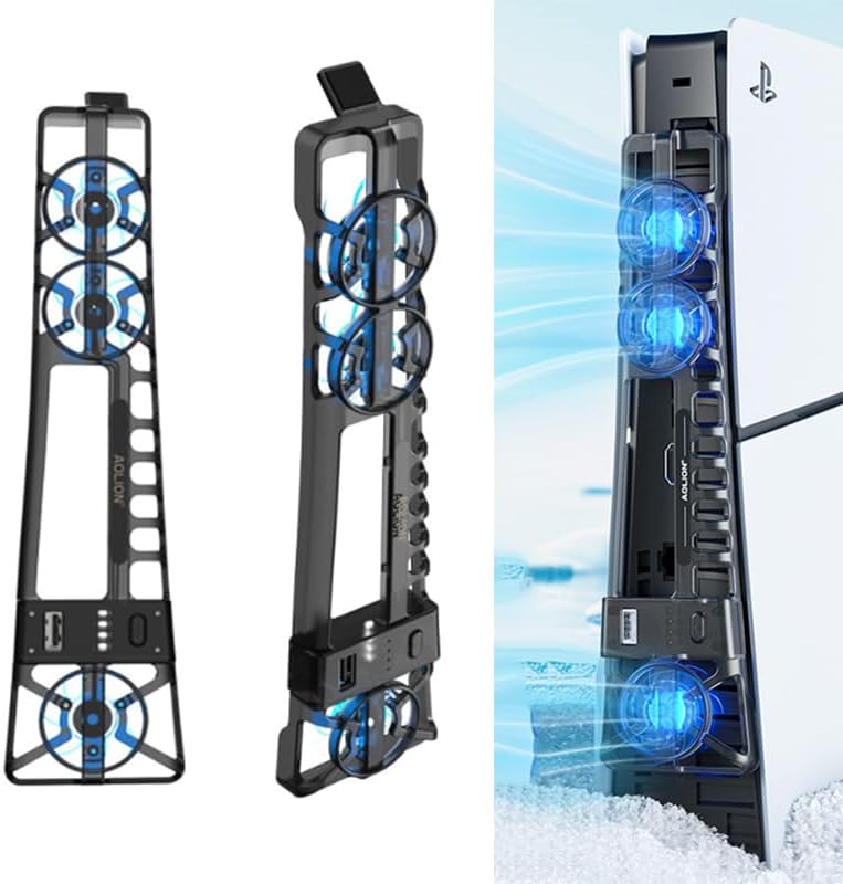 1.Cooling fan for PS5 Pro: New PS5 cooling fan, compatible with both disc and digital versions. Includes three small fans on the outside to quickly dissipate heat generated by the PS5 console for a smoother, quieter gaming experienc