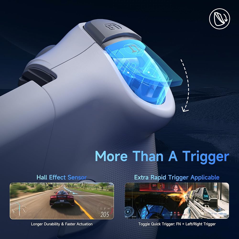 【Hall-effect Andstick & Trigger】 تتميز وحدة التحكم بالهاتف المحمول بتكنولوجيا التأثير في القاعة للدقة ، بدون انجراف ، ولا توجد مناطق ميتة. يستخدم مستشعر القاعة الحساسة للغاية المغناطيس للكشف عن حركة عصا التحكم ، مما يمنع البلى من الأجزاء الداخلية. هذا يضمن الدقة والمتانة للسيطرة على اللعبة بسلاسة ودقيقة 360 درجة.