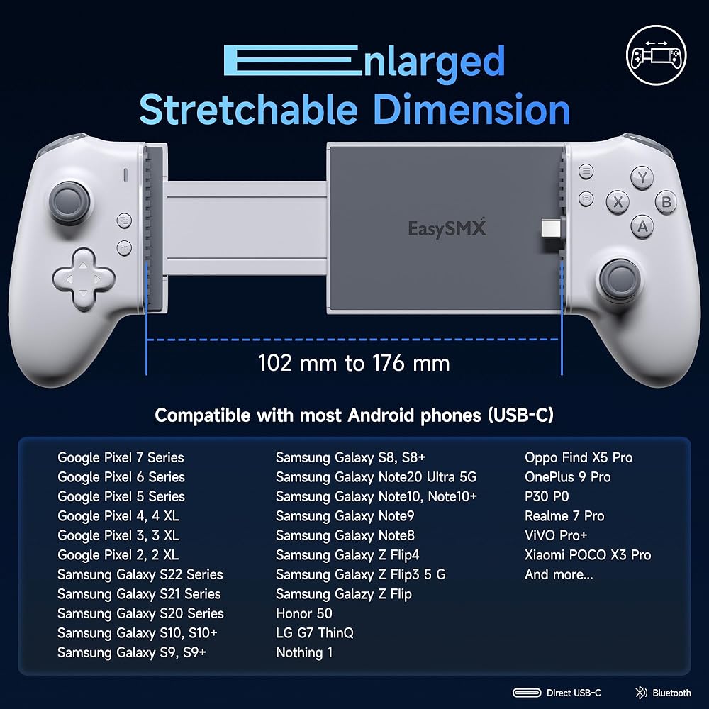 【توافق اللعبة】 يلعب بشكل جيد مع Xbox و PlayStation وألعاب الكمبيوتر الشخصي وخدمات البث مثل Steam Link و Nvidia Geforce Now و Amazon Luna. جيد للعناوين مثل الإسفلت 9 ، ديابلو الخالد ، fortnite ، وأكثر من ذلك. [ملاحظة]: قم بتبديل هاتف Android إلى Bluetooth للحصول على Call of Duty.