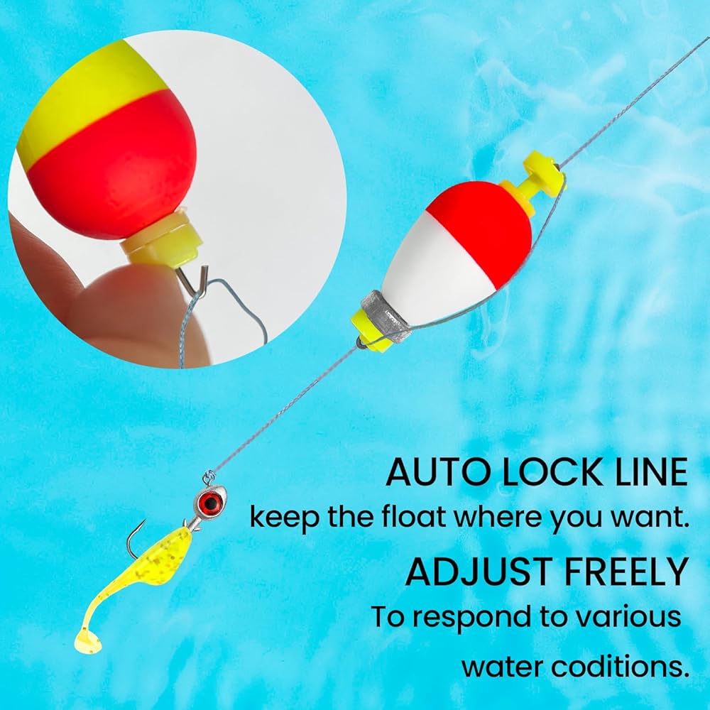 اضبط تعويم الصيد العمق: يتبنى الجزء العلوي والسفلي لبوبر الصيد تصميم "قفل مزدوج" ، مما يجعل من السهل ضبط العمق ، مما يسمح لك بتعليق الطعم في منطقة الإضراب