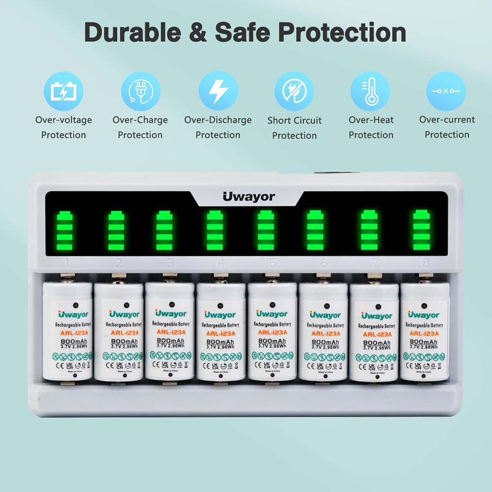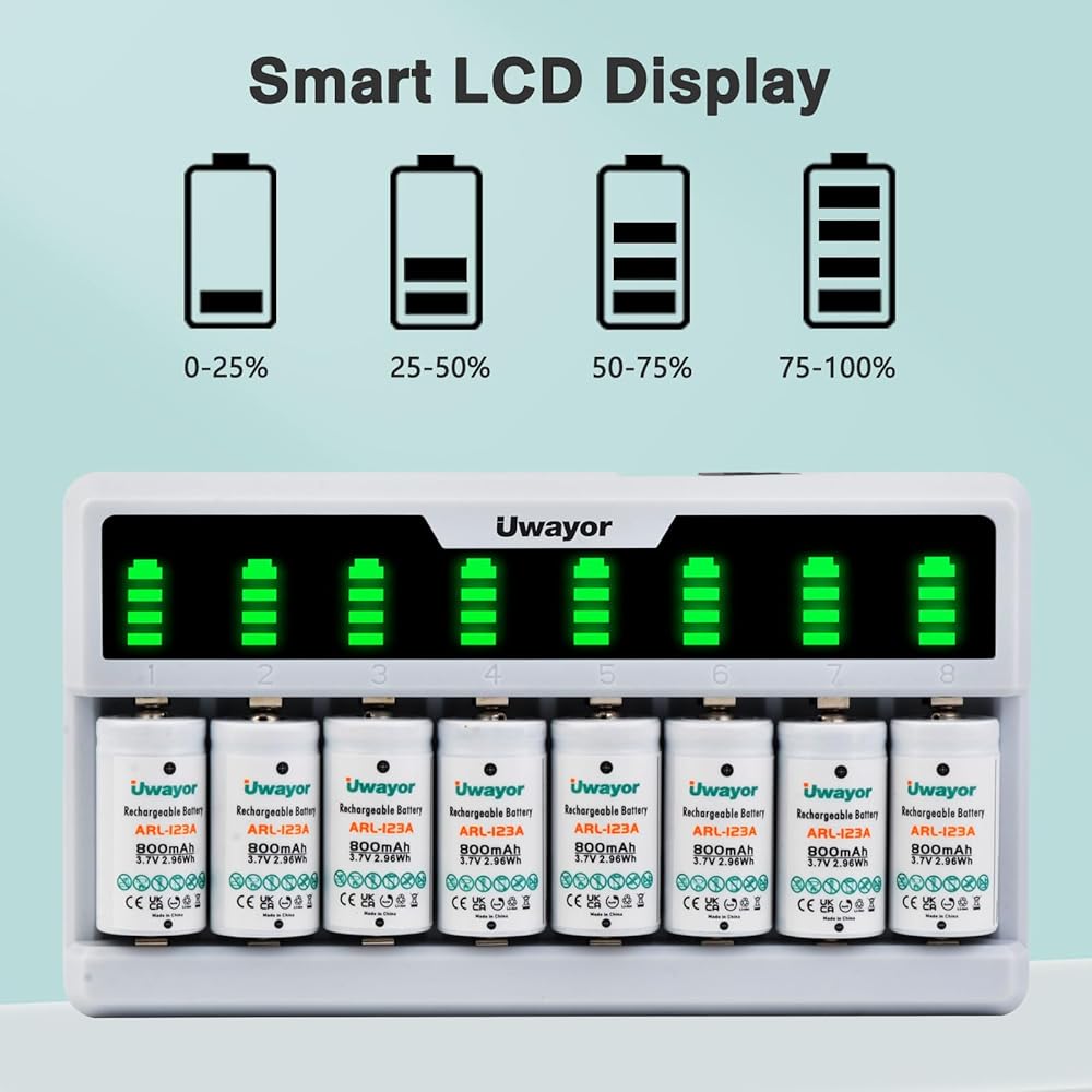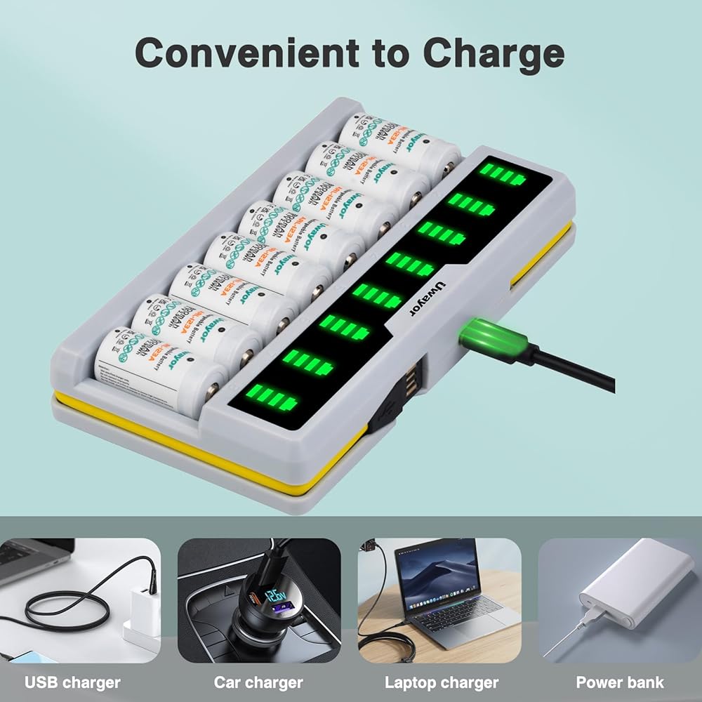 【8 فتحات+شاشة LED الذكية】 8 فتحات مستقلة تدعم 8 بطاريات في وقت واحد ، أو يمكن مراقبة كل من البطاريات الثمانية بشكل مستقل. يمكن أن تُظهر شاشة LED الذكية أن البطارية يتم شحنها أو شحنها بالكامل ، ويمكن إزالة البطارية عندما لا تحتاج إلى إعادة شحنها. شاحن البطارية الذكي لدينا صديق للبيئة ويكون كفاءة في استخدام الطاقة ويمكن استخدامه بأمان وأمان