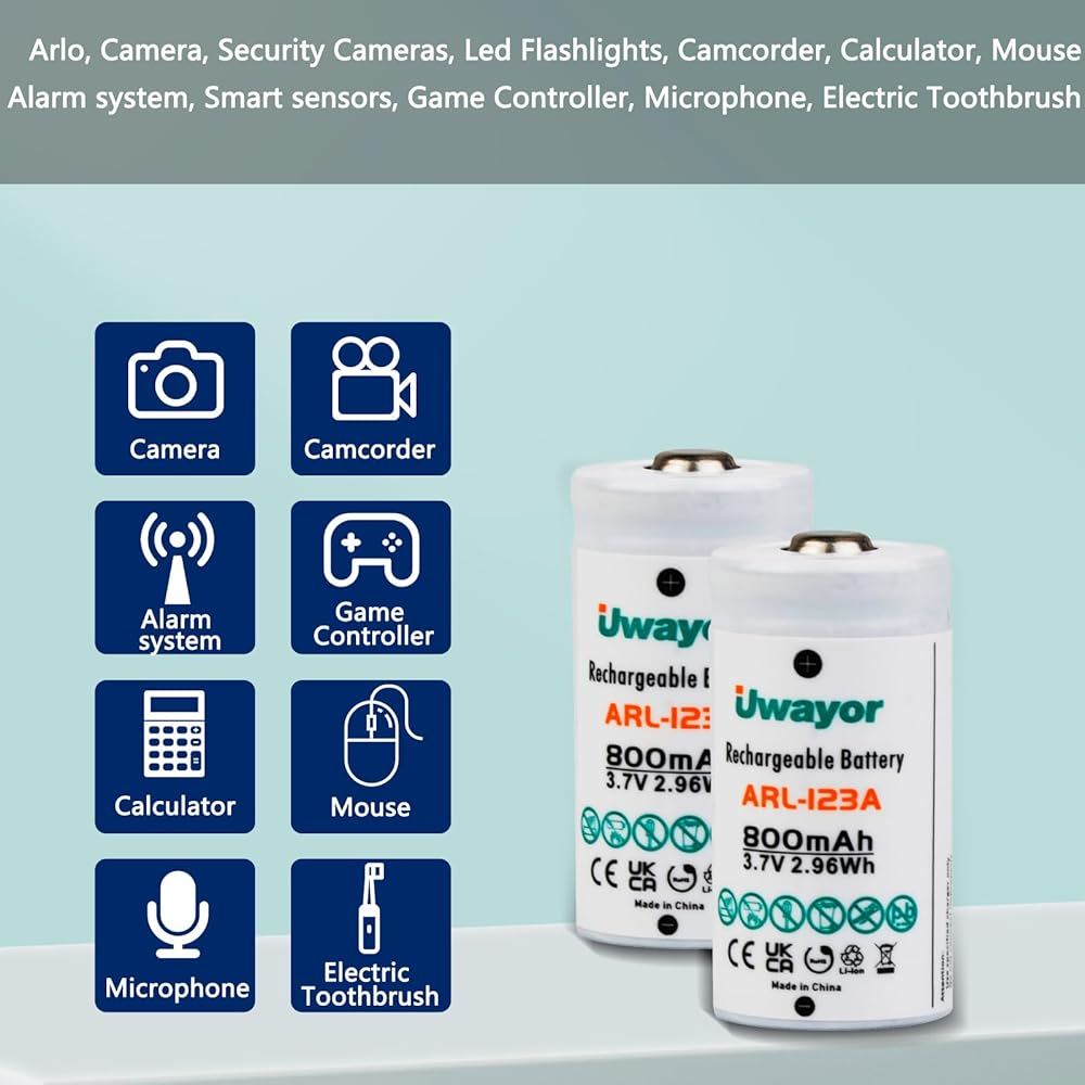 【التوافق الواسع】 بطارياتنا القابلة لإعادة الشحن متوافقة مع Arlo Camera VMC3030 VMS3130 VMK3200 VMS3330 3430 3530 كاميرات أمان ومصابيح شرقية LED والكاميرا الرقمية وكاميرات الحاسبة والماوس ونظام الإنذار وأجهزة الاستشعار الذكية وغيرها من الأجهزة الإلكترونية الإلكترونية