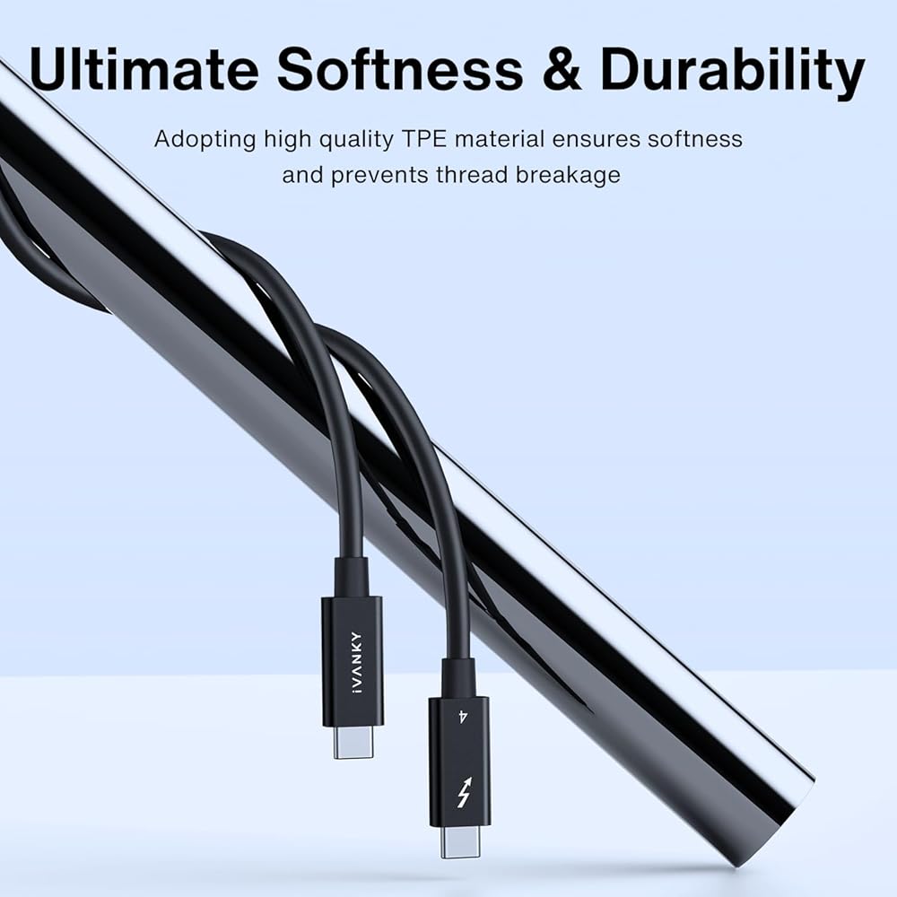 المواد عالية الجودة: مصنوعة من مادة TPE عالية الجودة ، هذا كابل USB-C عالي السرعة إلى USB-C متين ومرن ، مما يضمن أداء موثوق به بمرور الوقت ؛ كابل Thunderbolt يقاوم التشابك ويسهل إدارته