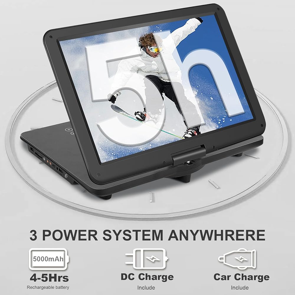 19.6 "مشغل أقراص DVD المحمولة مع شاشة عالية الدقة 17.6 بوصة ، 4-5 ساعات تشغيل ، مشغل DVD محمول مع مكبرات الصوت المزدوجة الاستريو ، الذاكرة الأخيرة ، Sync TV/USB/SD بطاقة ، تشغيل جميع أقراص تنسيق الأقراص باستثناء Blu-ray