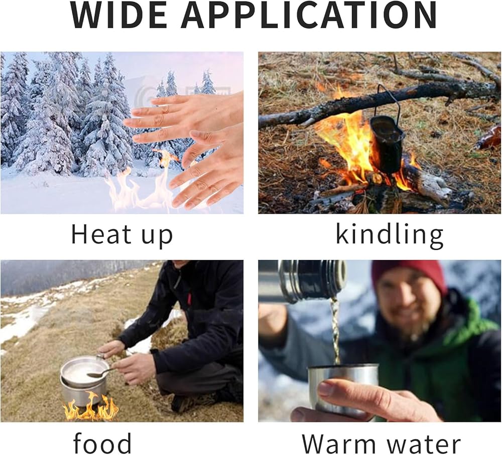 Works at high altitudes and sub-zero temperatures; ignites with match or lighter。Whether you are hiking or camping, or experiencing cold weather or rain. Solid fuel is your first choice for outdoor activities