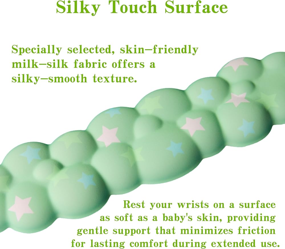 الراحة الناعمة : هذه الراحة المعصم على شكل سحابة تستخدم بطانة رغوة ذاكرة عالية الكثافة للحصول على دعم ممتازة وراحة. في الوقت نفسه ، يتكون سطح الراحة المعصم من نسيج قابل للتنفس لضمان الجفاف والراحة للمعصم. يجمع هذا التصميم بين النعومة والدعم ، مما يتيح لك الحصول على أفضل دعم للمعصم عند استخدام لوحة المفاتيح.