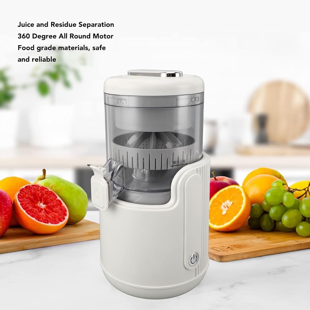 1. Applications: This electric juicer can extract orange, apple, pear, grape, lemon, watermelon, pomegranate, and other fruits, and separation, compact and practical.2. 360 Degree Motor: his juicer features a 360-degree omni-directional motor that extracts from the pulp pomace without the need for seeding or peeling.3. Leakproof Spout: This citrus juicer is equipped with a convenient spout that makes it easy to pour out and prevent dirtying your kitchen counter or tabletop.4. Power Supply: The electric juicer machine is equipped with a 1500mAh polymer lithium battery and is charged using USB C to ensure multiple juicing on a full .5. Materials: This citrus juicer is made of food grade materials, and environment friendly, can be used with confidence, and equipped with brush for cleaning.Specification:Item Type: Electric JuicerMaterial: PC Cup, PP, Food Grade SiliconeFunction: and Pulp SeparationProduct Size: Approx. 25 x 13.5 x 13.5cm / 9.8 x 5.3 x 5.3inRated Power Supply: DC7.4VMotor Power: 45WCapacity: 500MLBattery: 1500mAh Polymer Lithium Battery (included)Weight: Approx. 1418g / 50ozpacking list:1 x Extractor1 x Juicing x Top Lid1 x USB Cable1 x Brush