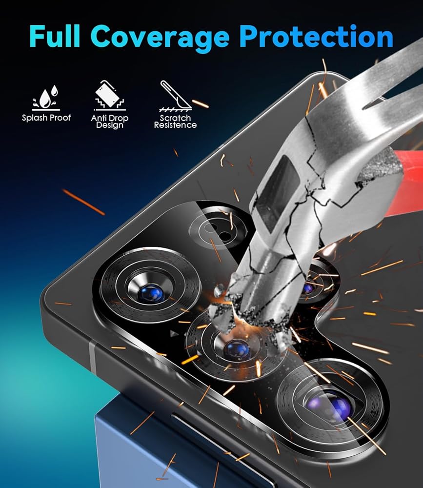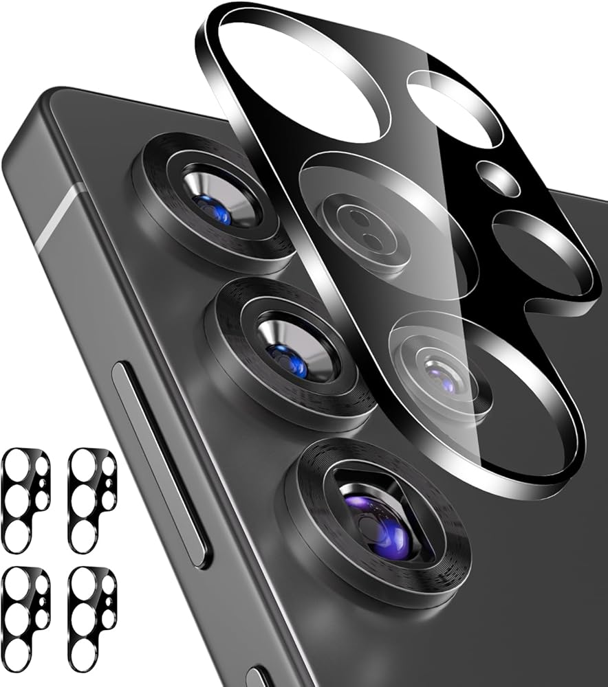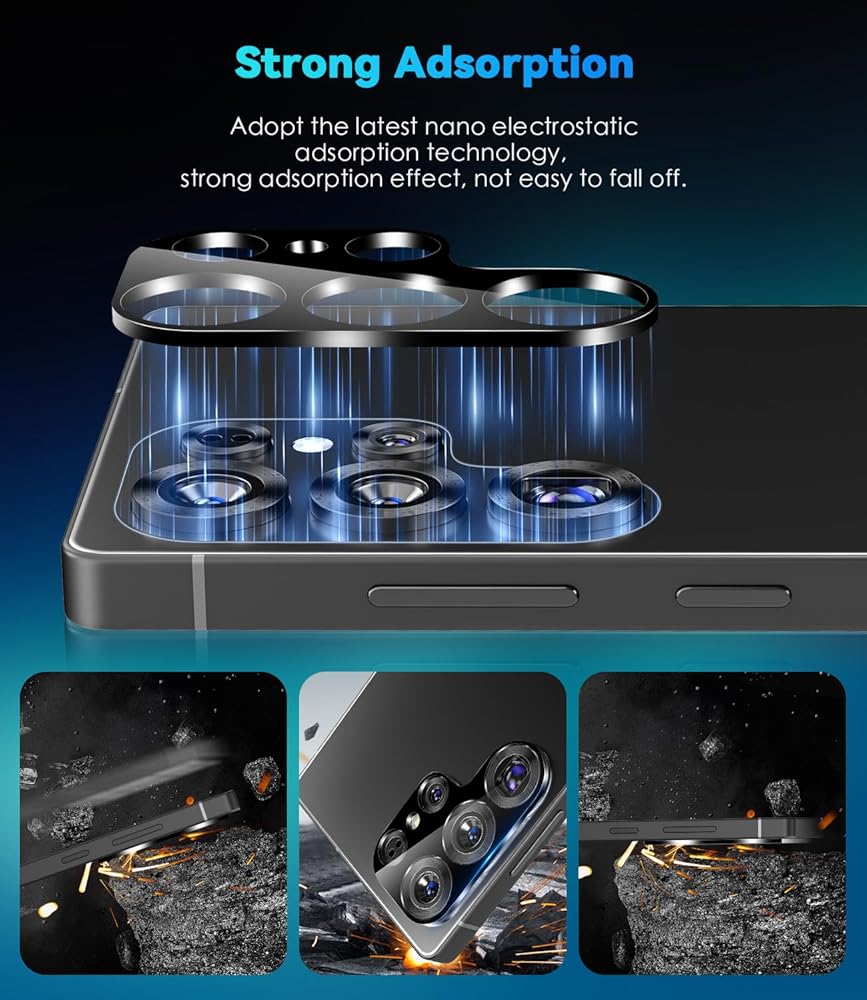 【Premium Material】Made of ultra-thin tempered glass with precise laser cutting and a polished finish, this camera lens protector is strong and durable with a hardness of 9H, offering full coverage protection for the entire camera lens of your Samsung Galaxy S25 Ultra