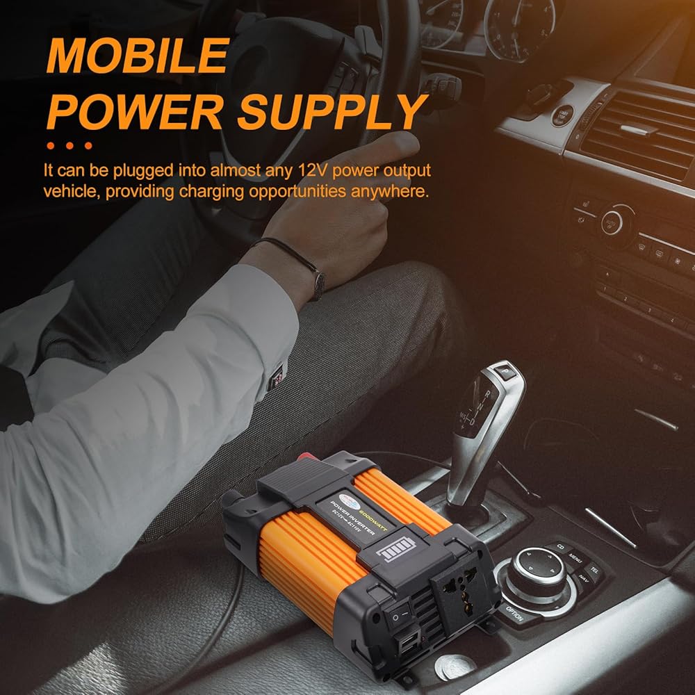 Inverter for car: 12v is generally for car, lightweight and compact, excellent for vacations, camping and work trips.