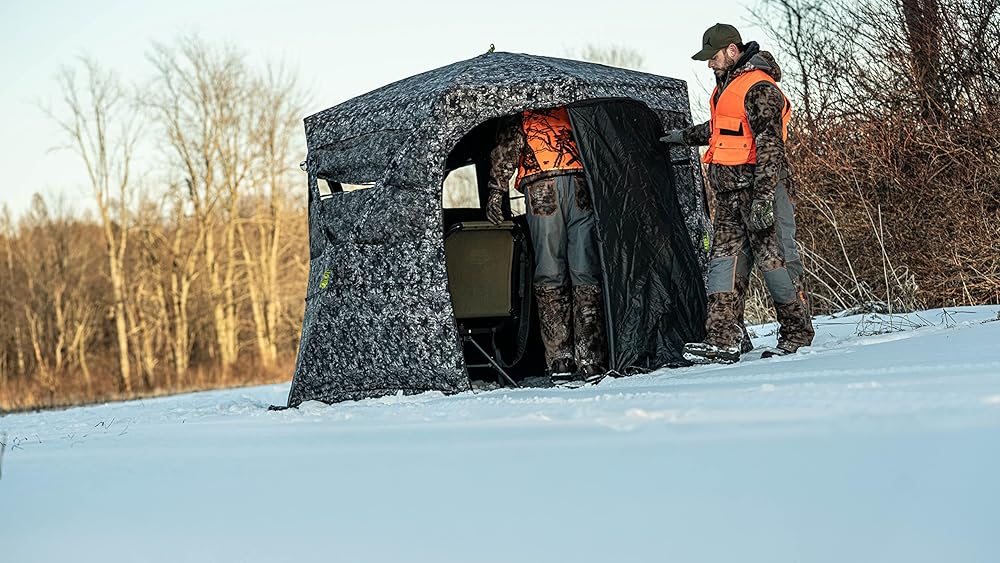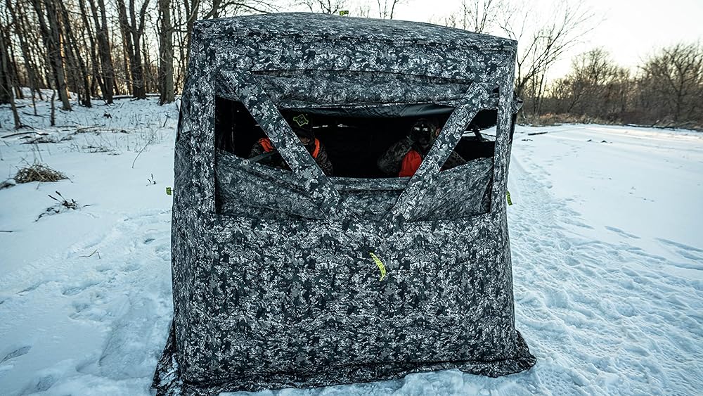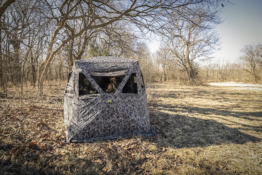 FULL VIEW - Equipped with four full-width panoramic shooting windows, this blind for hunters provides unparalleled visibility & shooting opportunities, ensuring you never miss a shot from any angle, whether you're an archery enthusiast or a gun hunter