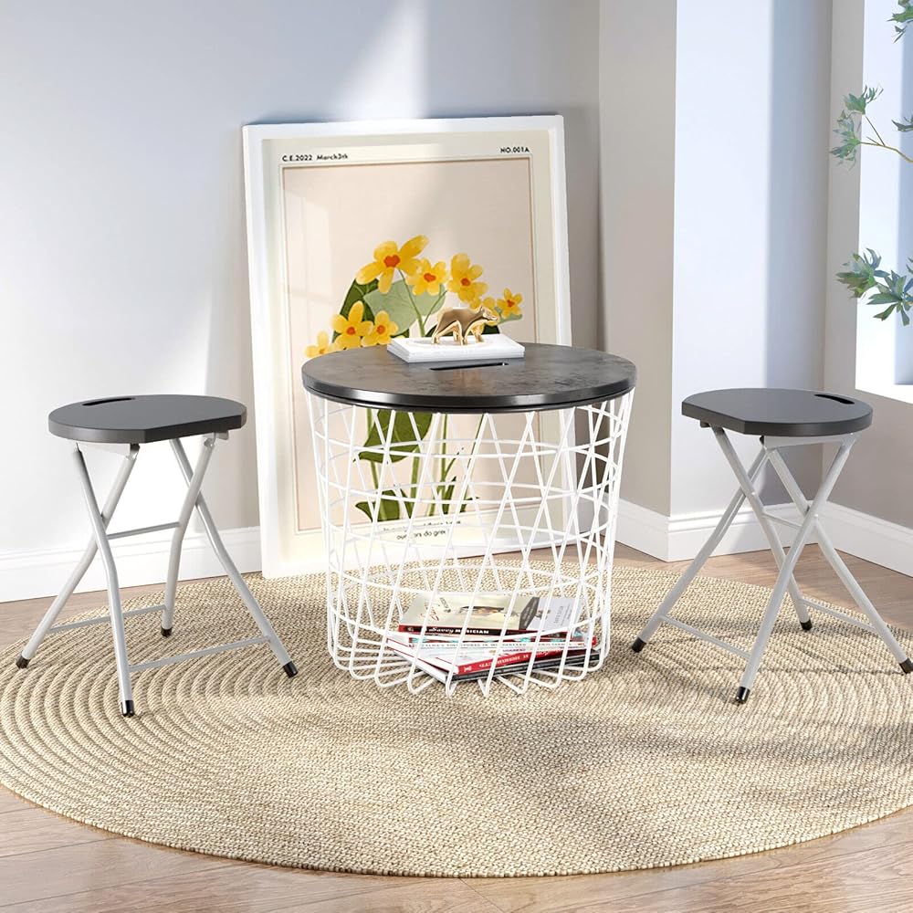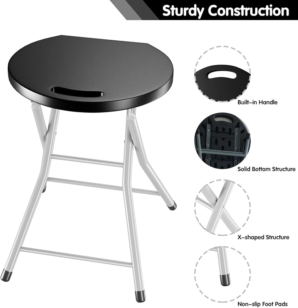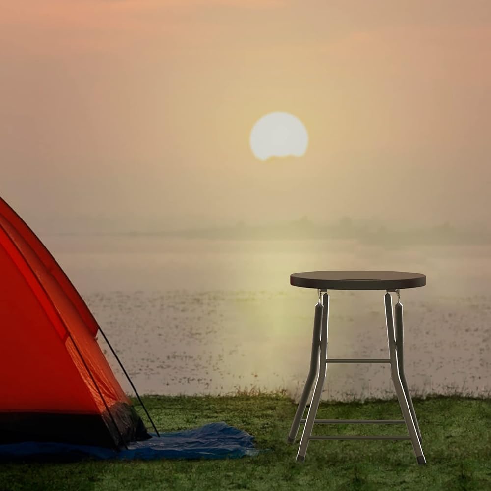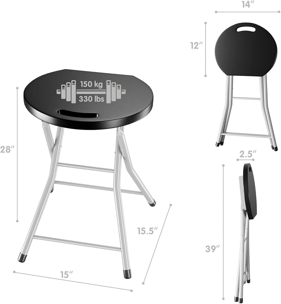 Our portable folding stool is a comfortable seat companion in your daily life. The collapsible stool is perfectly combined with portability, comfort and durability, which is suitable for various outdoor and indoor activities, widely used in bedrooms, dormitories, offices, swimming pools, courtyards, beaches, picnic parties, camping, barbecue, fishing, hiking and more. The highdensity pol hylene plastic seat is allweather resistant for outdoor use. Plus, there are foot pads to prevent skidding. The light weight and builtin handle make transport easier. When you travel, you can rest anytime and anywhere after unfolding it. Even if you sit on this compact foldable stool for a long time, you won't feel tired.