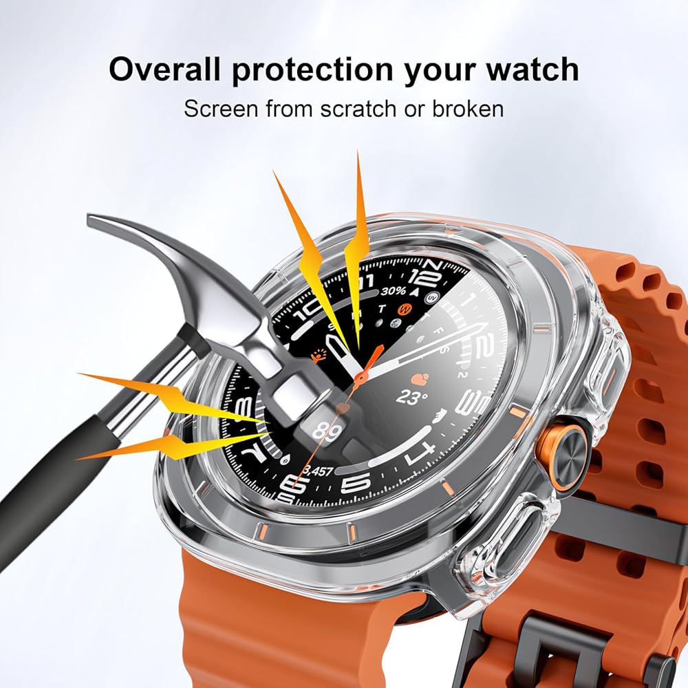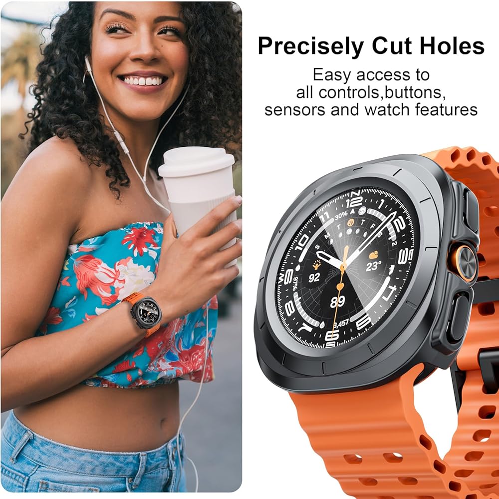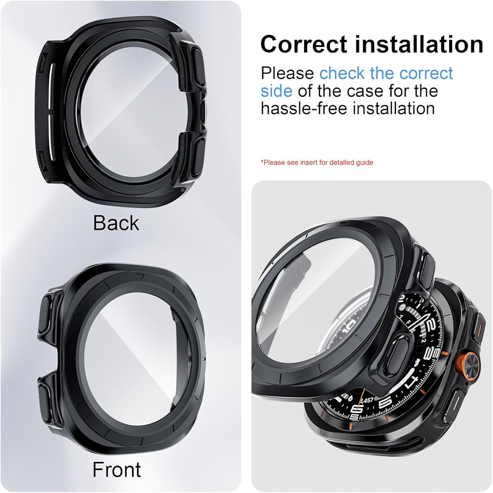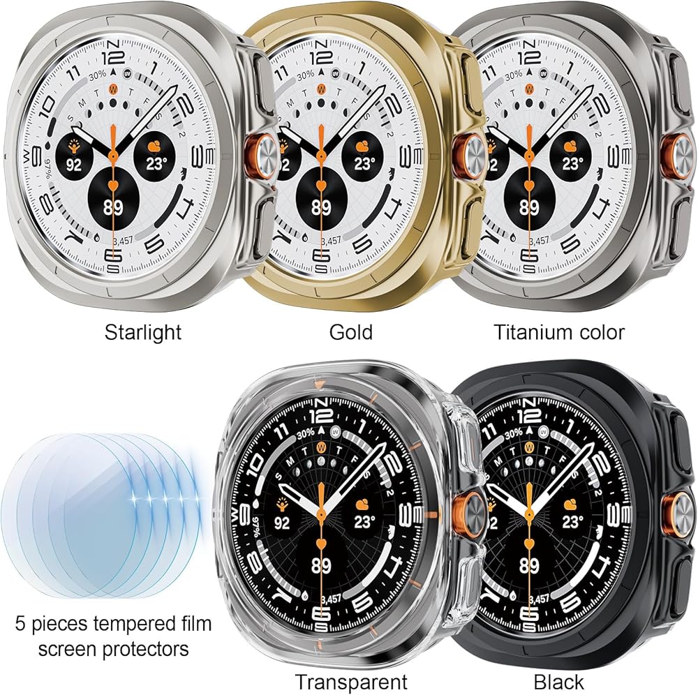 5+5 علبة حزمة لـ Galaxy Watch واقي شاشة Ultra 47 ملم ، غطاء واقٍ مضاد للكمبيوتر الشخصي مع الزجاج المقسى لـ Samsung Galaxy Watch 7 Ultra Case 47mm Women Men