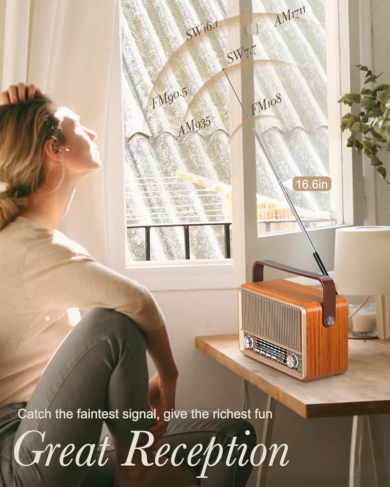【𝐑𝐚𝐝𝐢𝐨 𝐰𝐢𝐭𝐡 𝐰𝐢𝐭𝐡 𝐁𝐞𝐬𝐭 𝐑𝐞𝐜𝐞𝐩𝐭𝐢𝐨𝐧】 3-band Radio (FM: 87-108MHz ، AM: 522-1620 كيلو هرتز ، SW: 5.9-18.0 ميجا هرتز. راديو AM FM عتيق مع أفضل استقبال ، مزود بشريحة DSP عالية الجودة مصنوعة في الولايات المتحدة الأمريكية ، أكثر حساسية لالتقاط الإشارة. ، بث الطقس أو الموسيقى الكلاسيكية مع الراديو الرجعية.