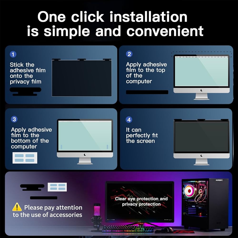 【مقاوم للخدش وقابل للغسل】 فيلم عرض الخصوصية المضاد للوهج لديه طبقة تعزيز السطح تحمي مرشح الخصوصية من الخدوش وبصمات الأصابع. قابلة للغسل وقابلة لإعادة الاستخدام. حتى بعد الاستخدام المطول ، ستحصل على شاشة خصوصية جهاز الكمبيوتر المكتبي الجديد بعد التنظيف.