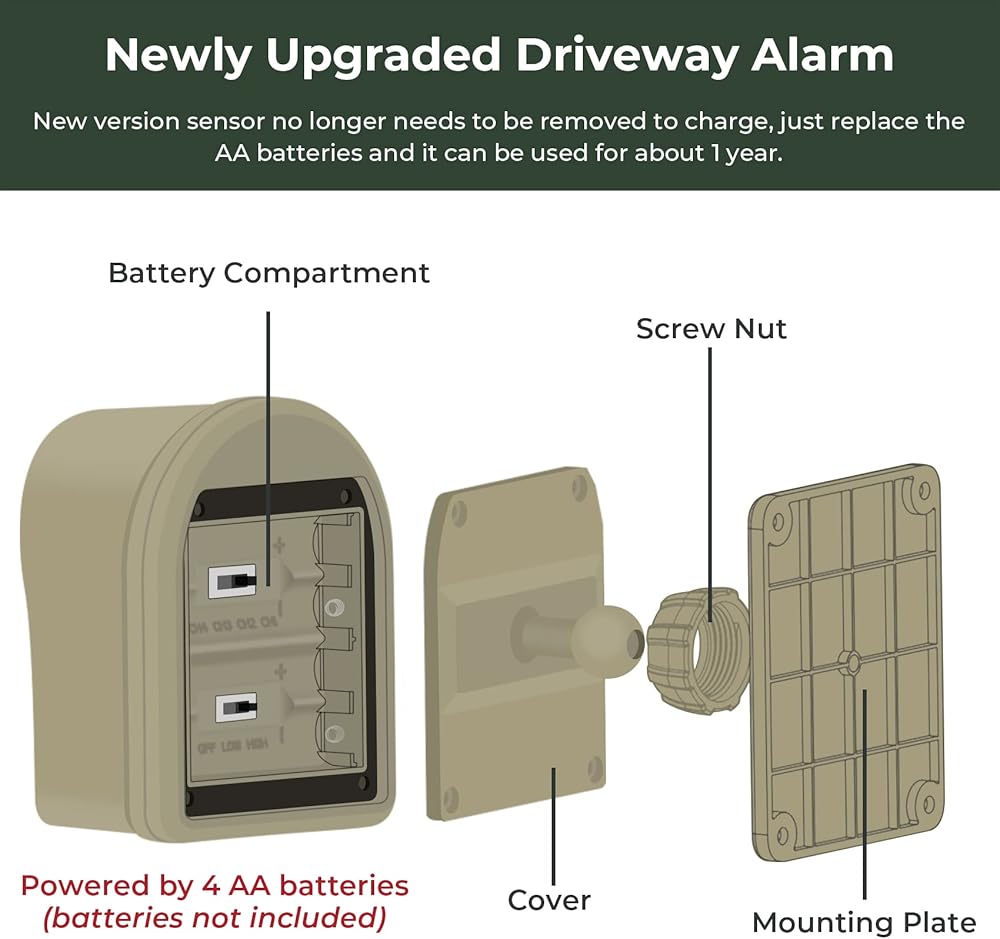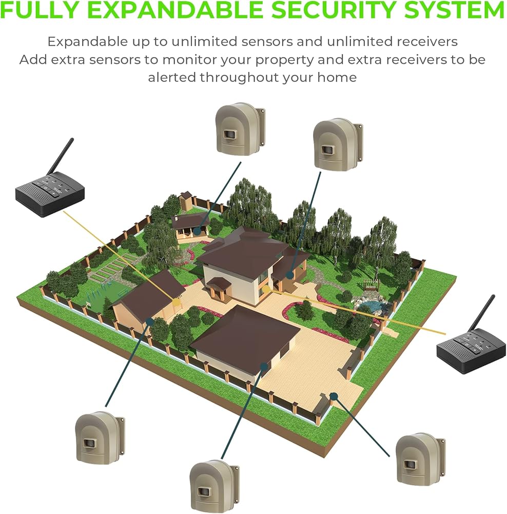 يسهل تثبيت دليل البدء السريع هل عملت في دقائق. يمكن توسيع ما يصل إلى 4 أجهزة استقبال وأجهزة استقبال غير محدودة للتغطية الكاملة لمحيطك. يكتشف إنذار الممر اللاسلكي حركة من البشر والسيارات والحيوانات الكبيرة. قم بمطابقة الدقات المختلفة مع أجهزة استشعار مختلفة حول الممتلكات الخاصة بك للتمييز حيث يتم اكتشاف حركة إنذار الممر اللاسلكي.