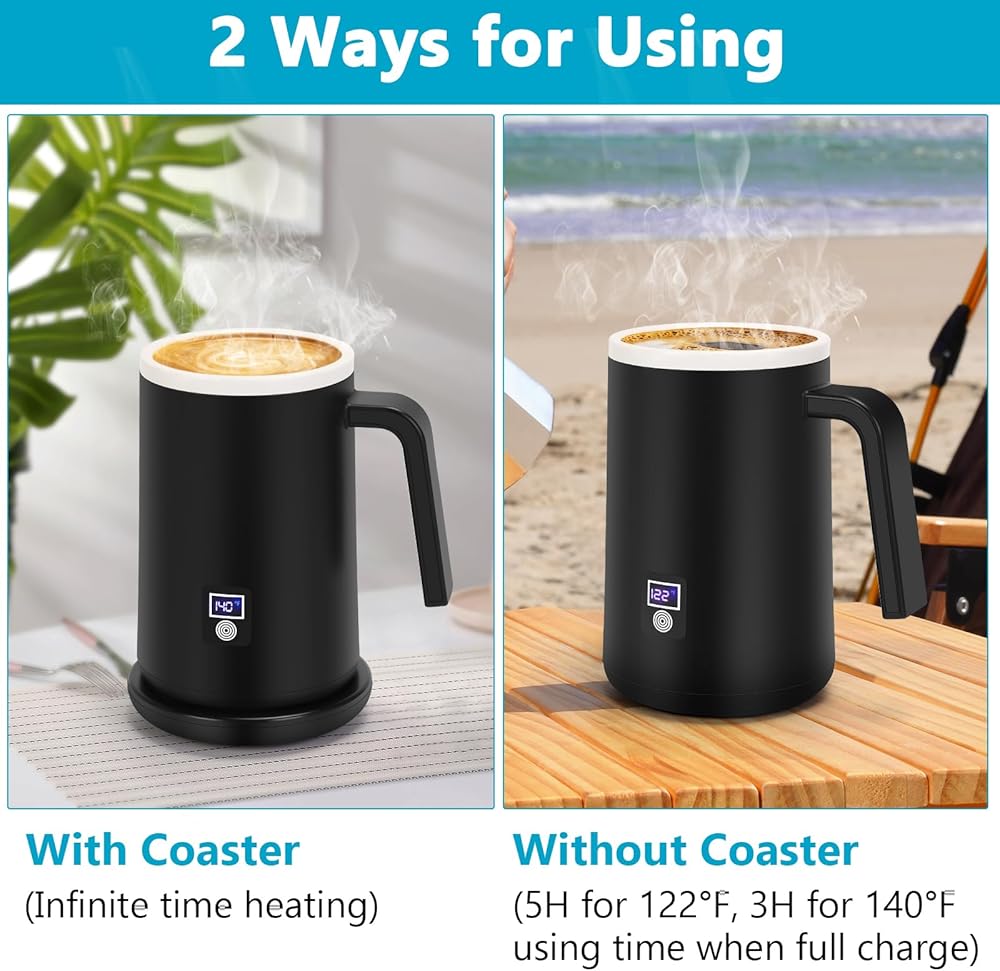 • هدية مثالية-تحافظ بطارية طويلة الأمد على درجة الحرارة المثالية لمدة 3-5 ساعات بعد الشحن الكامل. يشمل غطاء مقاوم للانسكاب وتوجيه شحن. هذا القدح القهوة الساخنة هو الهدية المثالية لشخص تهتم به في عيد الشكر وعيد الميلاد والعام الجديد وعيد الحب والمزيد.