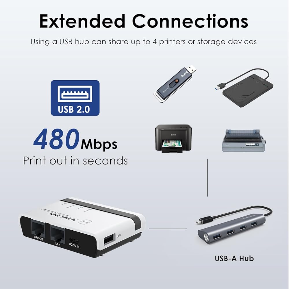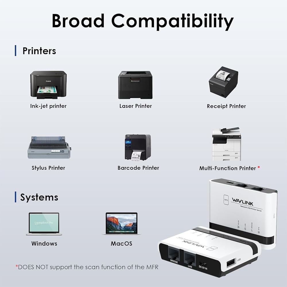 خادم طباعة Wavlink اللاسلكي ، 2025 USB WiFi Print Server