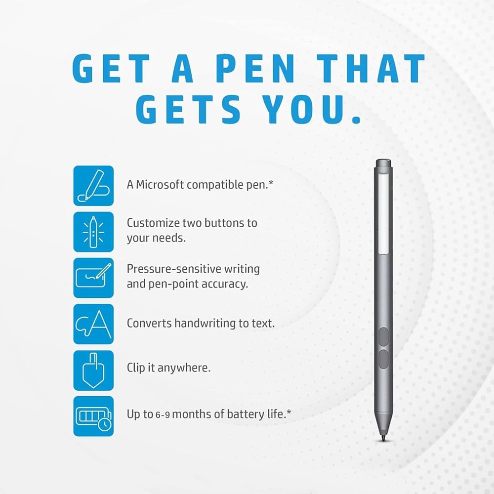 • Precision Stylus: This digital pen offers precise pressure sensitivity for natural writing and drawing experience on HP Envy x360, Pavilion x360, and Spectre x360 2-in-1 laptops.