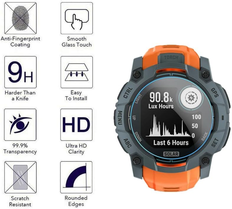2. Suitable for : Screen protector Compatible for Instinct 3 50mm AMOLED / Solar Smartwatch Tempered glass explosion proof film guard shield ;