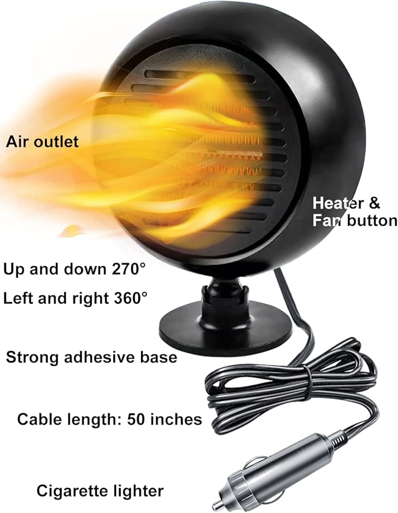 التصميم الذكي والمرن: يأتي سخاننا مع ميزة الدوران بزاوية 360 درجة ، مما يتيح لك توجيه الهواء الدافئ حيث تكون هناك حاجة ماسة. هذا التصميم الفعال يعني أن كل ركن من أركان سيارتك سيستفيد من توزيع الهواء الدافئ.