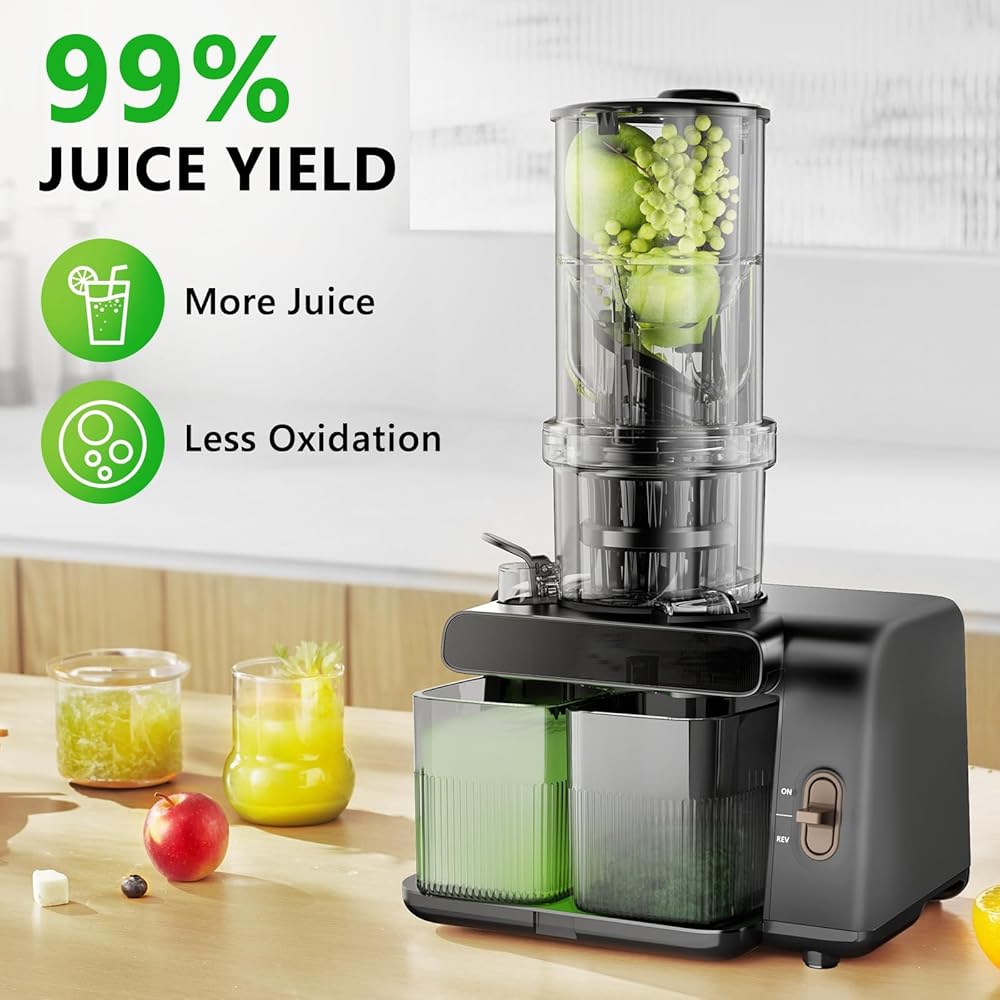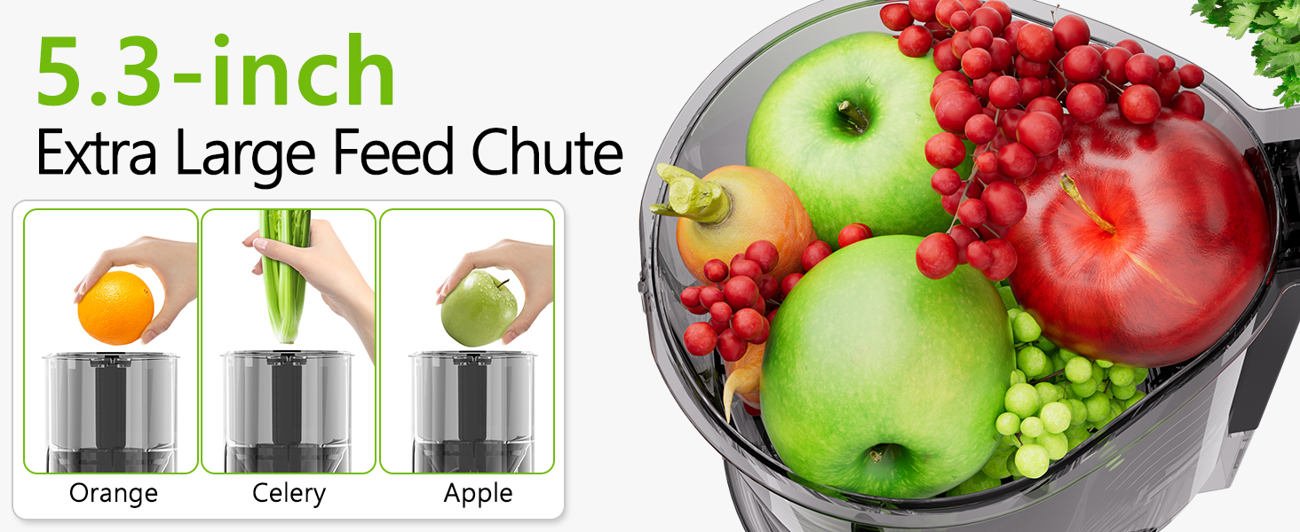 【5.3 بوصة من التغذية】 استمتع بعصير خالي من المتاعب مع عصيرنا المضغوط البارد ، ويتميز بتلوين تغذية آخر بحجم 5.3 بوصة يستوعب الفواكه والخضروات الكاملة دون تقطيع. تتيح لك سعة 28 أونصة العصير أكثر في وقت واحد ، مما يوفر أقصى قدر من الكفاءة والراحة لنمط حياتك المزدحم.