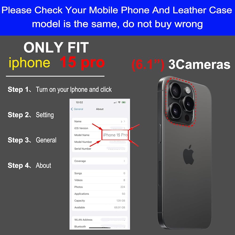 [COMPATIBILITY] - This leather case ONLY compatible with iPhone 15 Pro 6.1 Inch, NOT compatible with any other size