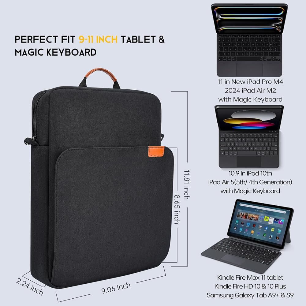 9-11 بوصة حقيبة سفر للأكمام من 9-11 بوصة لـ iPad Air 11 بوصة M2 M3 (2025) و iPad A16 ، Pro 11-In M4 ، 10th 10.9 ، Air 5 10.9-in ، Amazon Fire Max 11 & HD 10 ، Galaxy Tab A9+ Plus & S9 Fe