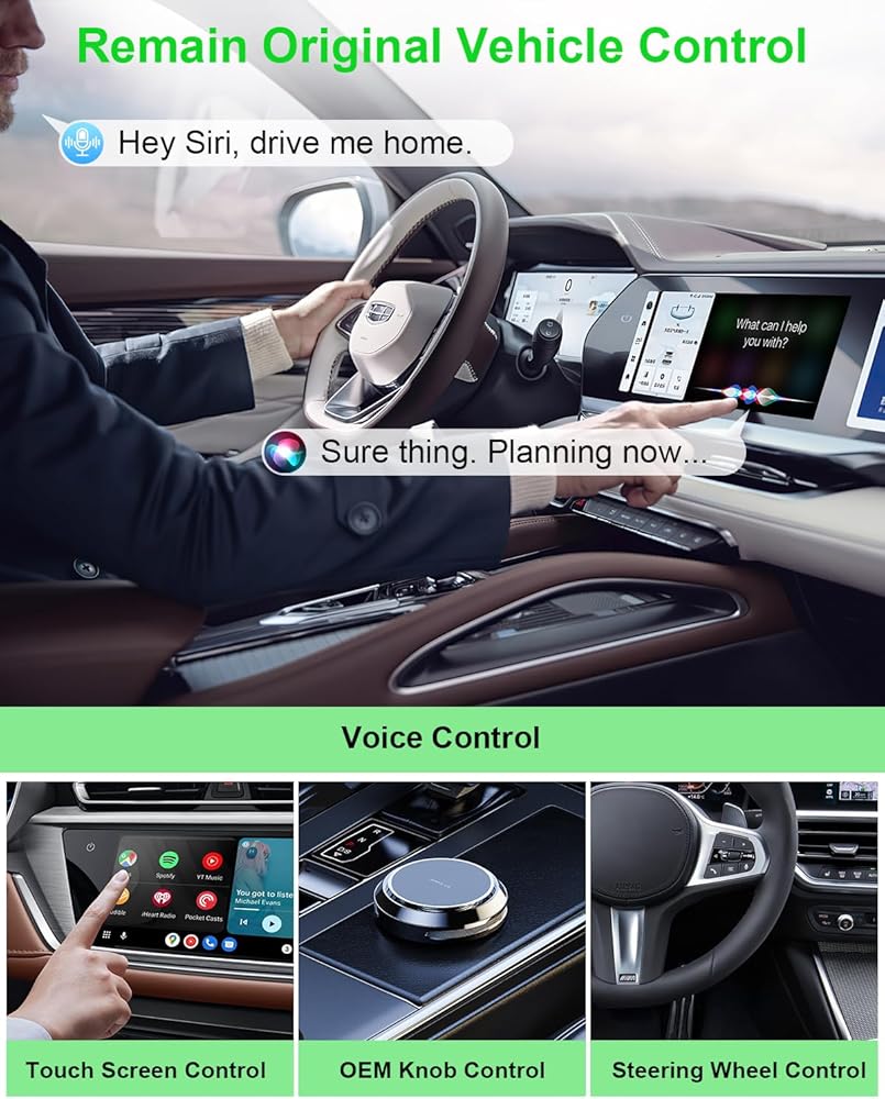 【محول Carplay و Android Auto Adapter】 كله في 1 محول لاسلكي يدعم كل من Carplay و Android Auto في جهاز واحد. يحول هذا الرابط السحري carplay carplay الأصلي لسيارتك إلى اللاسلكي للراحة الخالية من الكابلات. قم بتوصيل جهاز iPhone أو جهاز Android المتوافق بسرعة. يدعم المحول اللاسلكي Carplay طرق التحكم في السيارة الأصلية ، مثل التحكم الصوتي ، والتحكم في عجلة القيادة ، والتحكم في الشاشة اللمس وتشغيل المقبض. أضف المزيد من المرح إلى رحلتك.