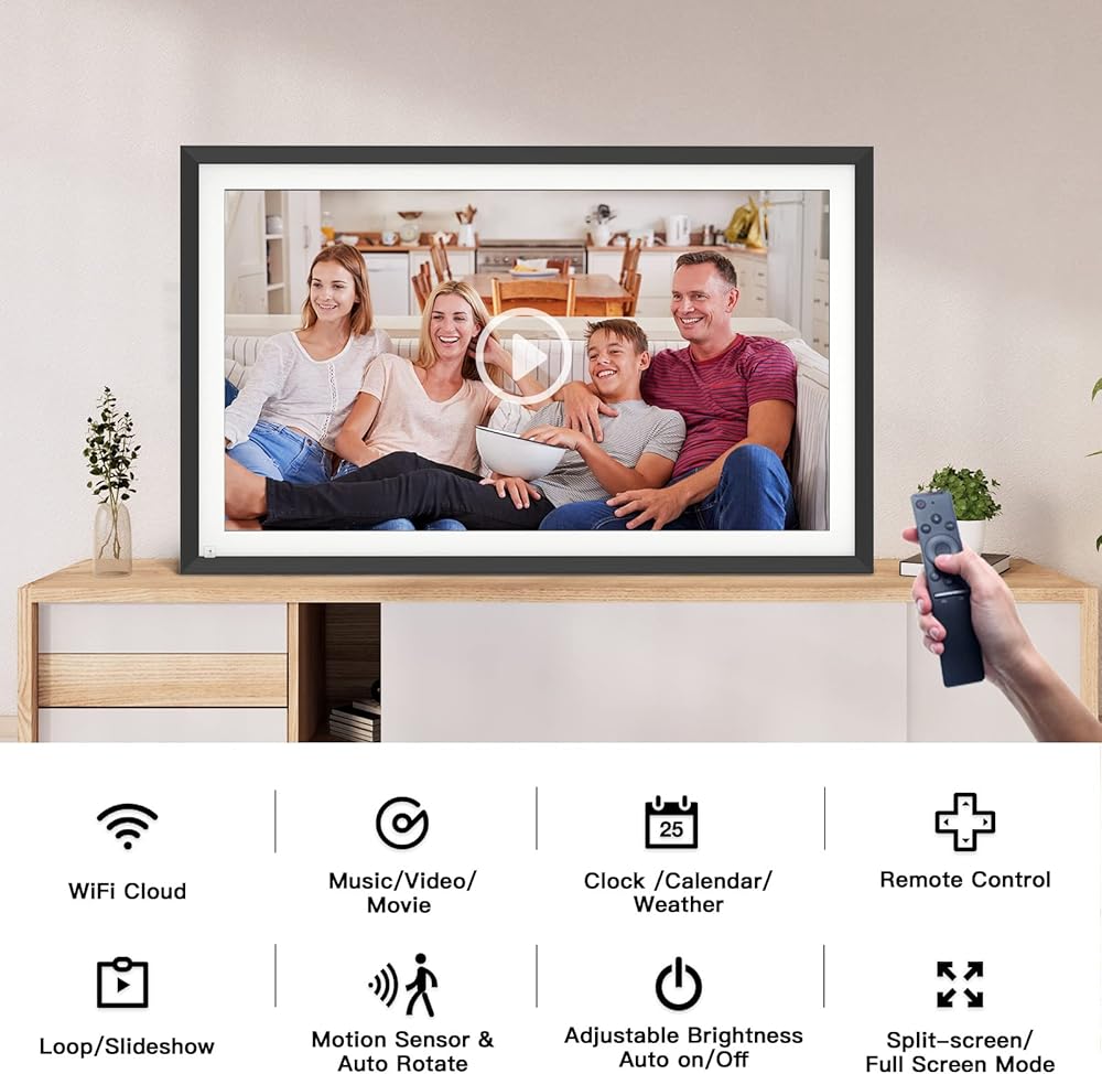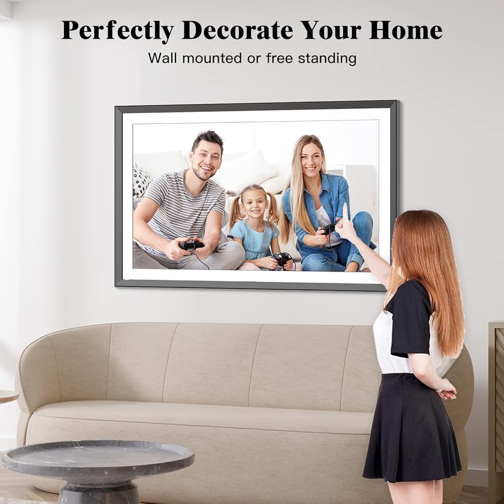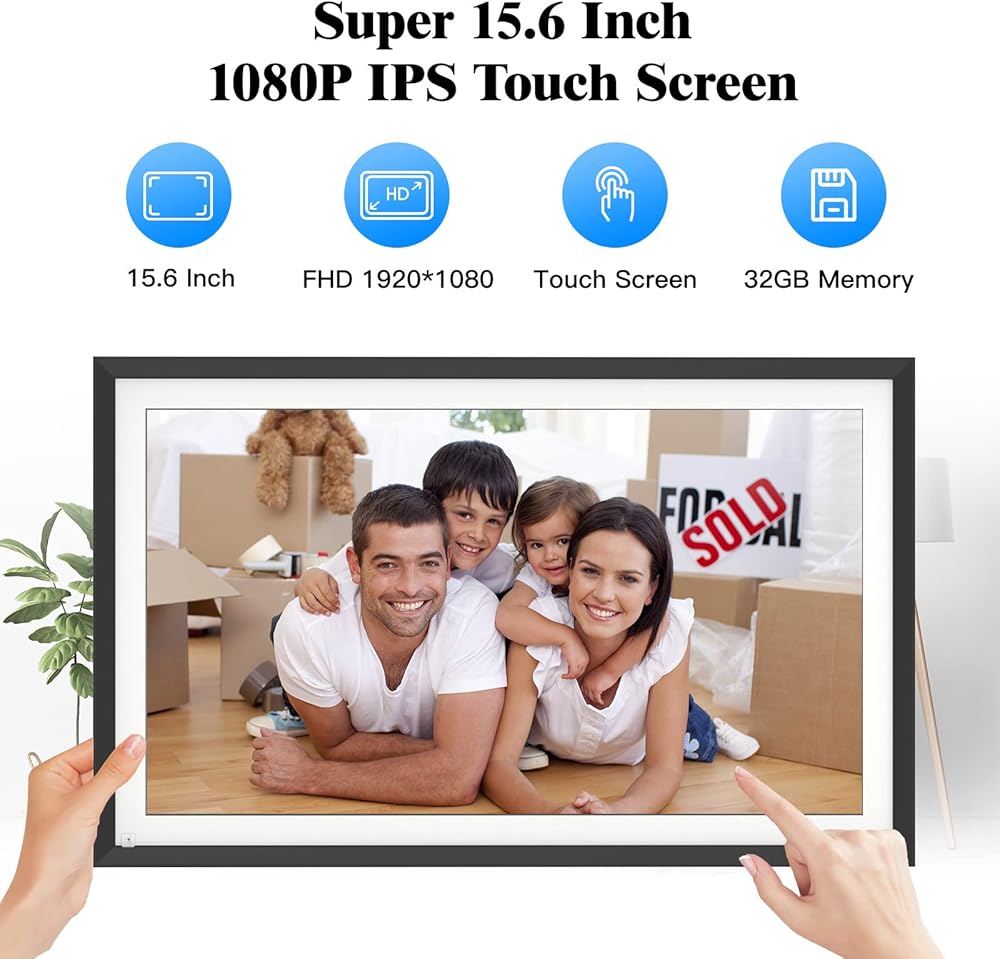 إطار صور رقمي كبير 15.6 بوصة إطار صور رقمي-Fullja WiFi Digital Frame مع شاشة لمس IPS ، الدوران التلقائي ، مستشعر حائط ، مستشعر الحركة ، مشاركة الصور ومقاطع الفيديو ، تخزين سحابي غير محدود
