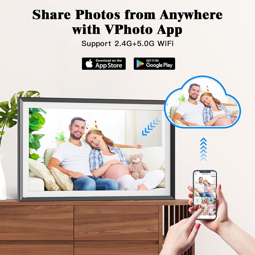 [سهلة الاستخدام ، هدية مثالية]: تتيح الشاشة التي تعمل باللمس البديهي إعدادًا سهلاً لإطار صورة WiFi هذا وعرض الصور بدون مجهود مع النقر السريع لإصبعك. سهلة الاستخدام للغاية لجميع الأعمار. الإطار الرقمي هو الهدية المثالية لكبار السن الذين أقل مهارة في استخدام هواتفهم الذكية للبقاء على اتصال بالأجيال الشابة. اجعل أي مناسبة مميزة إضافية عن طريق الهدايا هذا إطار الصورة الرقمية WiFi.