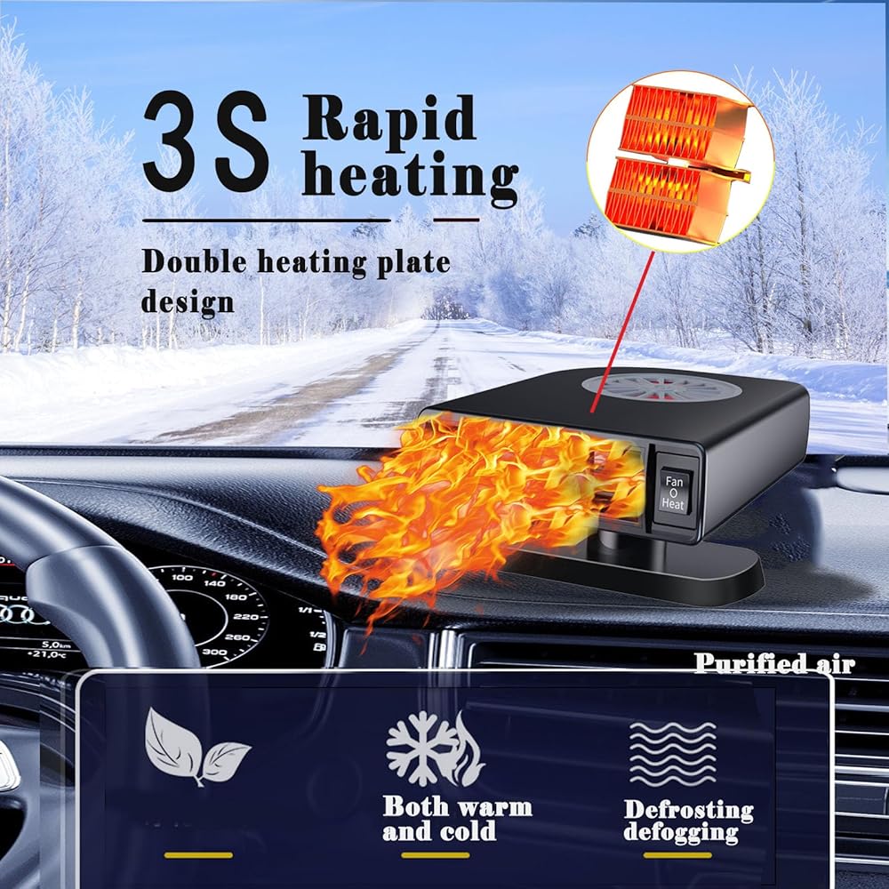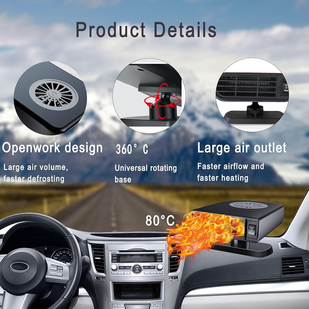 【التسخين السريع لمدة 3 ثوانٍ إلى 100 درجة مئوية】 يضمن وسائل التسخين ذات السلك عالي الجودة PTC في سخان سيارتنا تسخينًا سريعًا وآمنًا. إنه يزيل بسرعة الصقيع والضباب لتجربة قيادة دافئة وواضحة.