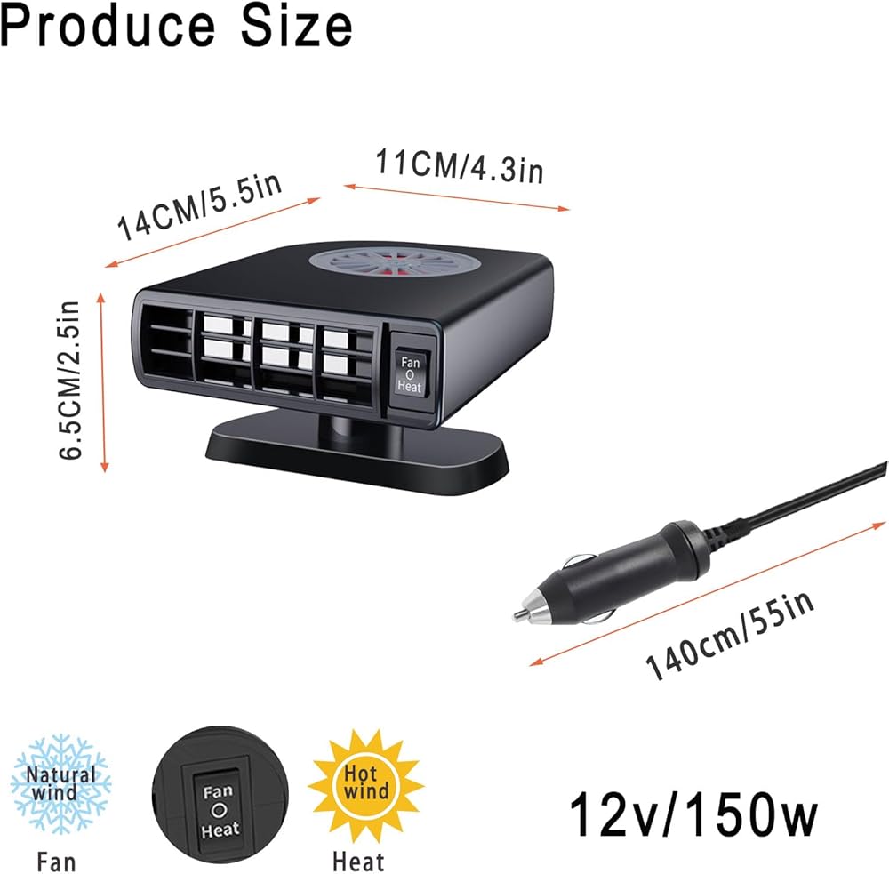 【دوران 360 درجة وسهل تثبيت】 سخان سيارة 12V/180W لدينا لديه قاعدة دوارة 360 درجة وسلك طاقة طوله 1.4 متر لتحديد المواقع متعددة الاستخدامات في سيارتك. من السهل التثبيت باستخدام حصيرة لاصقة مضمونة على الوجهين وتقوم بمقبس سجائر سجائر سيارتك.