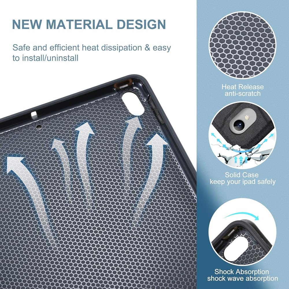 【حافظة قرص العسل وحامل القلم الرصاص】 توفر الطبقة الداخلية لحالة لوحة المفاتيح وسادة نمط شبكة قرص العسل التي يمكن أن تحرر أكثر من 80 ٪ من حرارة آباد Apple ، وحماية iPad من ارتفاع درجة الحرارة ، وطول عمر لأكثر من 30 ٪. يحافظ حامل قلم رصاص مدمج على قلم Apple الخاص بك في Apple Ecention ، وهو حماية وتخزين رائعة لقلم القلم الرصاص Apple عندما لا تكون قيد الاستخدام أو شحنها ، فتحات الحد الأقصى والمحول ، بسهولة لحمل قلم iPad مع جهازك (Pencil ، Cap ، Cap & محول غير مدرج).
