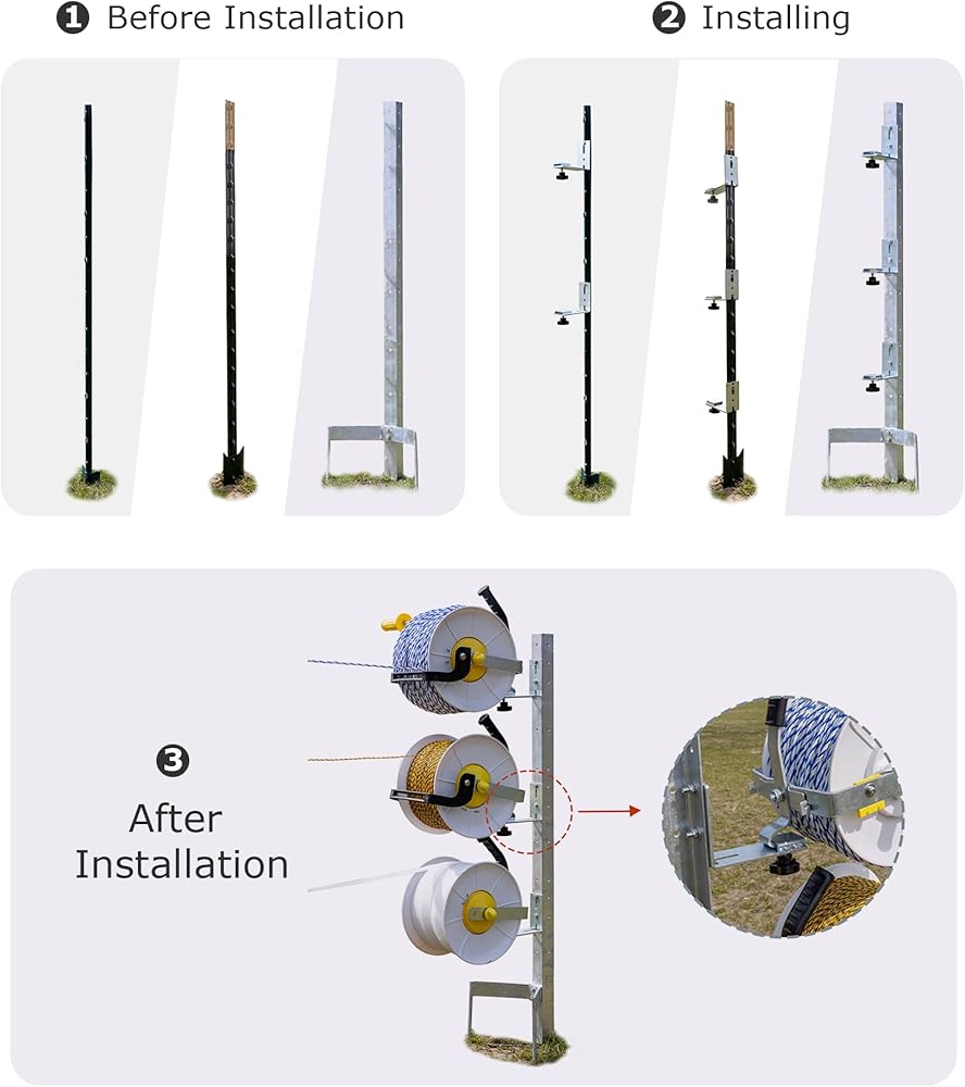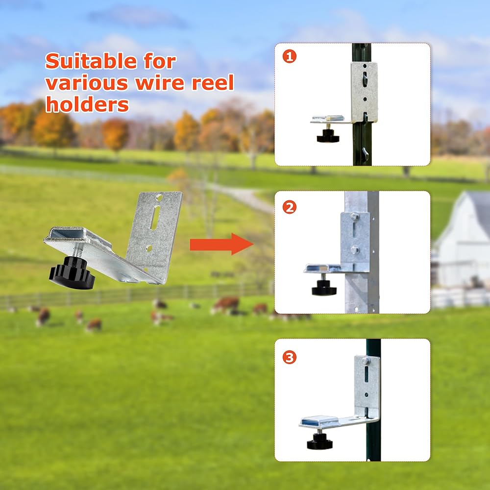 4 حزمة T-Post قوس التثبيت ، الأسلاك الكهربائية مخزن الأسلاك حامل السلك كرة مسمار الإكسسوارات ، وتراجع بكرة سلك التمديد أداة ثابتة ، لكرات الأسلاك المعلقة على الأزرار