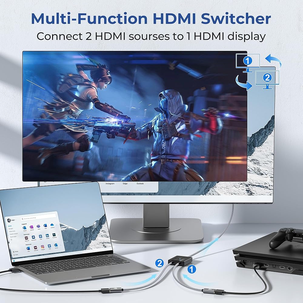 جودة البناء الممتازة: مصنوع من غلاف متين وكابل من النايلون ، تم تصميم مفتاح HDMI هذا لتحمل الاستخدام اليومي مع الحفاظ على مظهر أنيق وحديث. المواد عالية الجودة تضمن طول العمر والأداء الموثوق به.