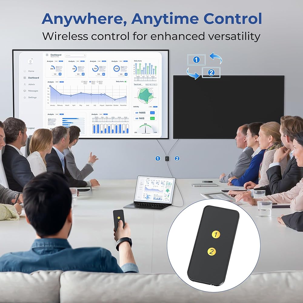 خيارات التبديل المريحة: التبديل بين أجهزة HDMI الخاصة بك دون عناء مع التحكم عن بُعد المضمّن. تتيح لك هذه الميزة إدارة اتصالاتك من راحة مقعدك ، مما يجعلها مفيدة بشكل خاص للإعدادات التي يصعب الوصول إليها المفتاح. يمكنك أيضًا استخدام الزر اليدوي على التبديل لإجراء تغييرات سريعة.