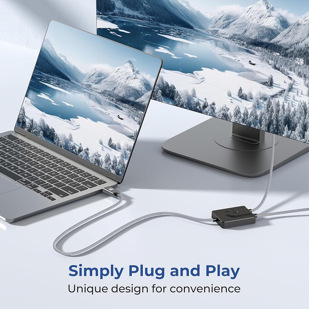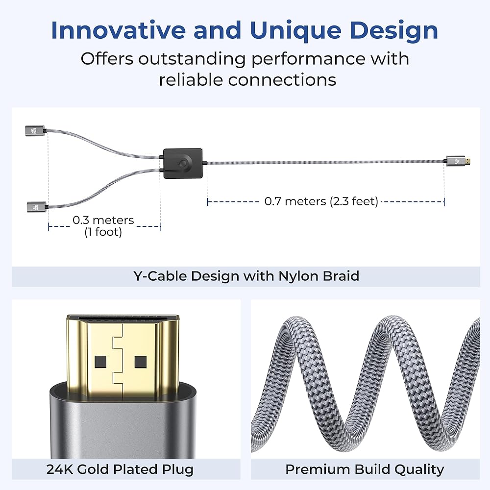 تصميم y-cable المبتكر مع كابلات الامتداد: على عكس محاور مفتاح HDMI النموذجية ، يتميز المحول الخاص بنا بتصميم فريد من نوع Y-Cable مع كابلات تمديد مدمجة. يوفر هذا اتصالات مرنة ومريحة في إعدادات ضيقة أو معقدة ، مما يؤدي إلى تبسيط اتصال الأجهزة غير القريبة من التبديل وتعزيز مرونة الإعداد الشامل.