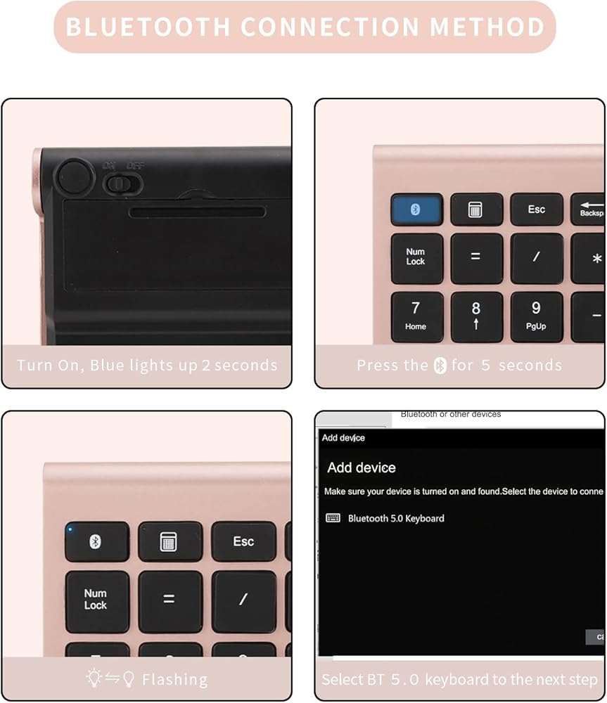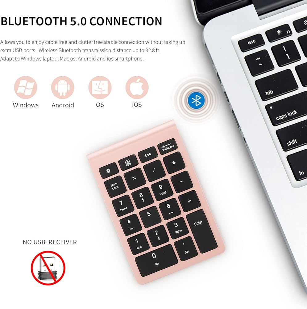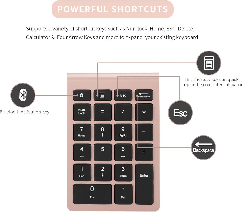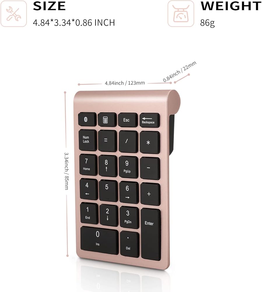 لوحة أرقام Bluetooth ، 22 مفاتيح لوحة مفاتيح مع مفتاح الاختصار ، 10Keys لوحة محاسبة مالية محمولة ، لوحة مفاتيح Bluetooth 5.0 Numeric للكمبيوتر المحمول ، الكمبيوتر الشخصي ، سطح المكتب ، PAD (Rose