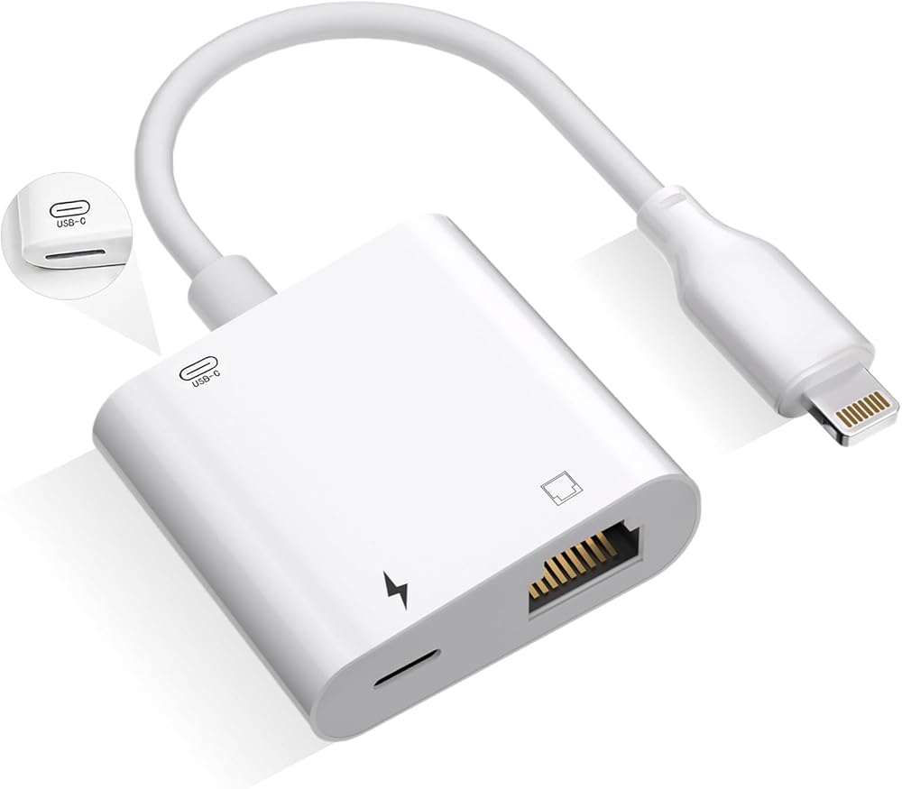 Lightning to Ethernet Adapter مع شحن , [Apple MFI Certified] RJ45 إلى محول شبكة Ethernet LAN Lightning ، متوافق مع iPhone 14 13 12 11/iPad , يدعم شبكة Ethernet عالية السرعة 100 ميجابت في الثانية