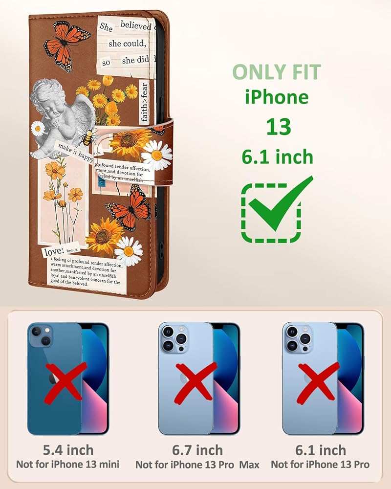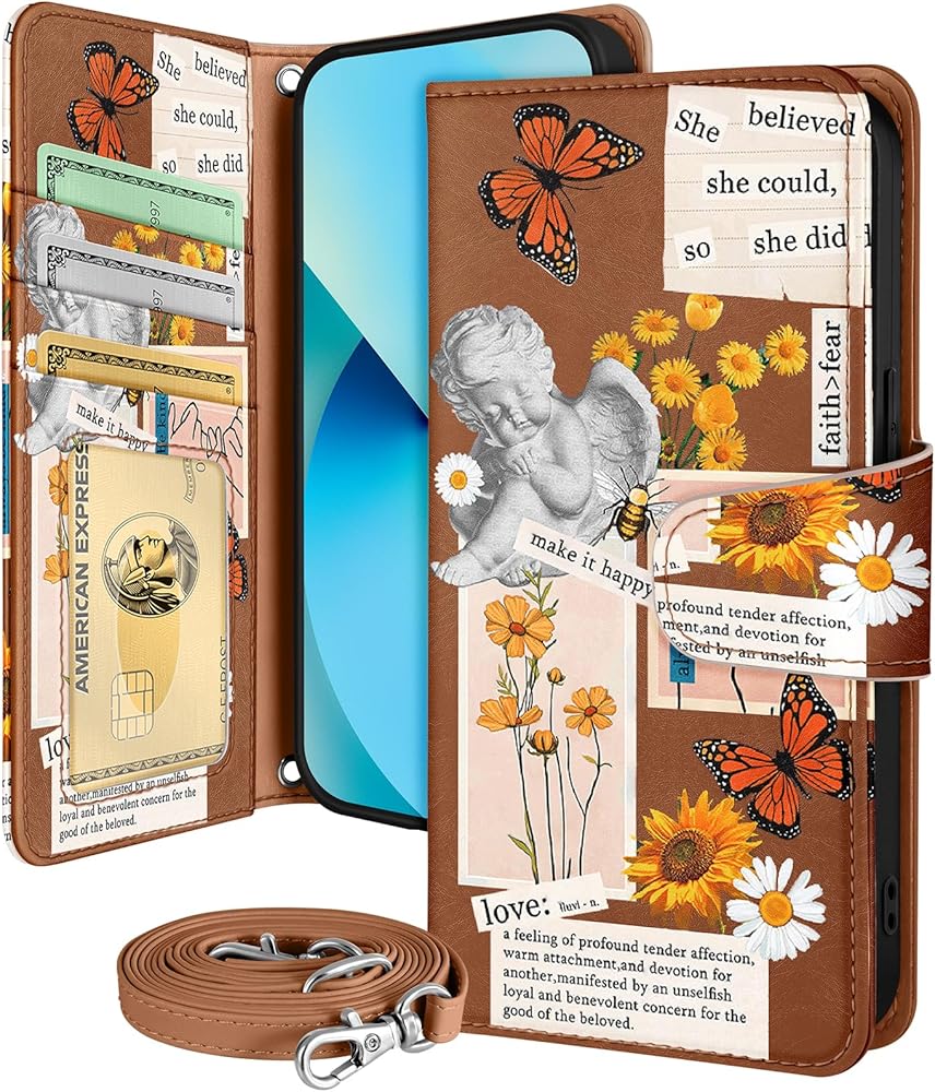 Buleens for iPhone 13 Wallet Case for Women - مع حامل البطاقة لـ iPhone 13 flip case crossbody conthetic to the phone 13 case with strap kickstand for girls girly ، angel