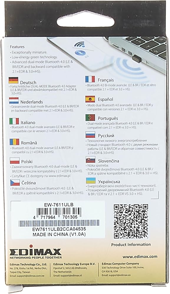 Edimax 2-in-1 N150 Wi-Fi & Bluetooth 4.0 Nano USB Adapter ، EW-7611ulb (4.0 Nano USB Adapter)