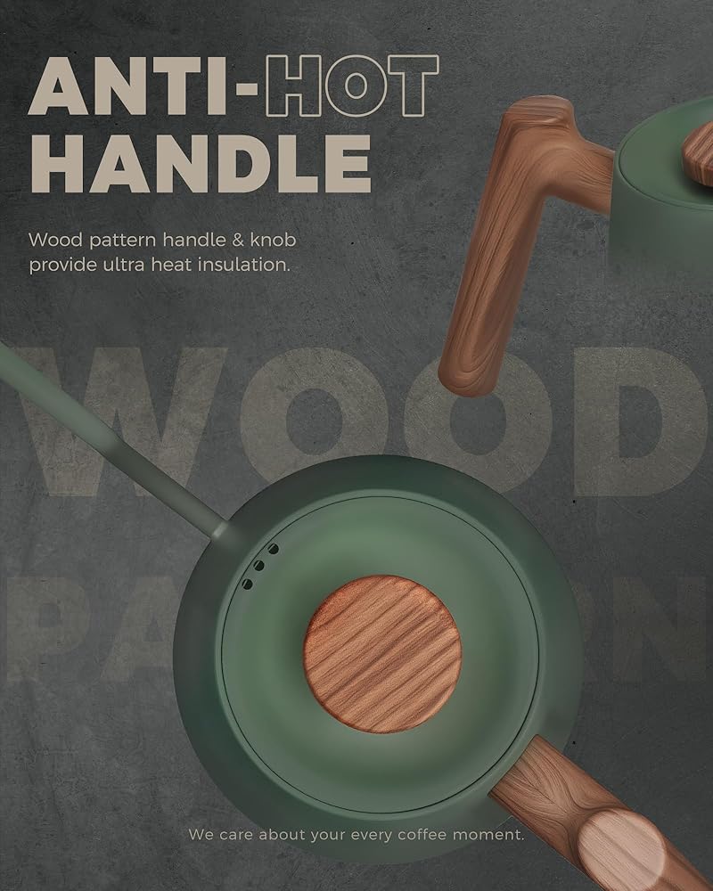 • التصميم الأنيق مع مقبض نمط الخشب: يتميز غلاية الشاي 34 أوقية بمقبض مقاوم للحرارة من الخشب المريح للسكب المريح ، إلى جانب شاشة LED سهلة القراءة تُظهر قراءات درجة الحرارة في الوقت الفعلي ، مما يضمن تخمير دقيق دون تخمين.