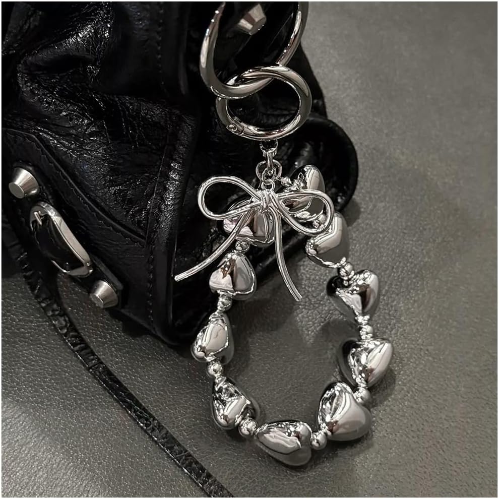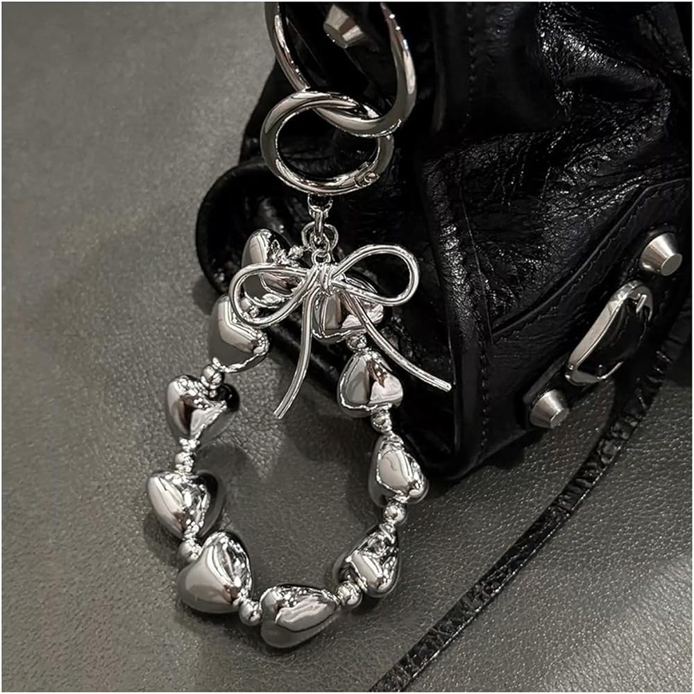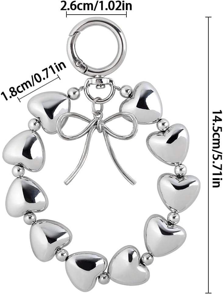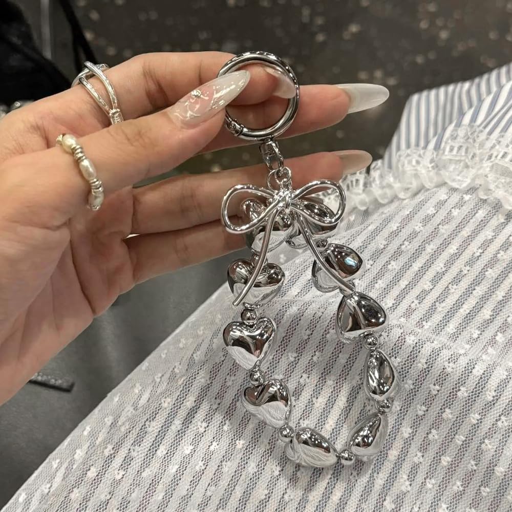 • 【Silver Heart Bow Keychains】You will get a shiny silver heart shaped beaded keychain with a bow pendant, featuring a minimalist design and fashionable versatility