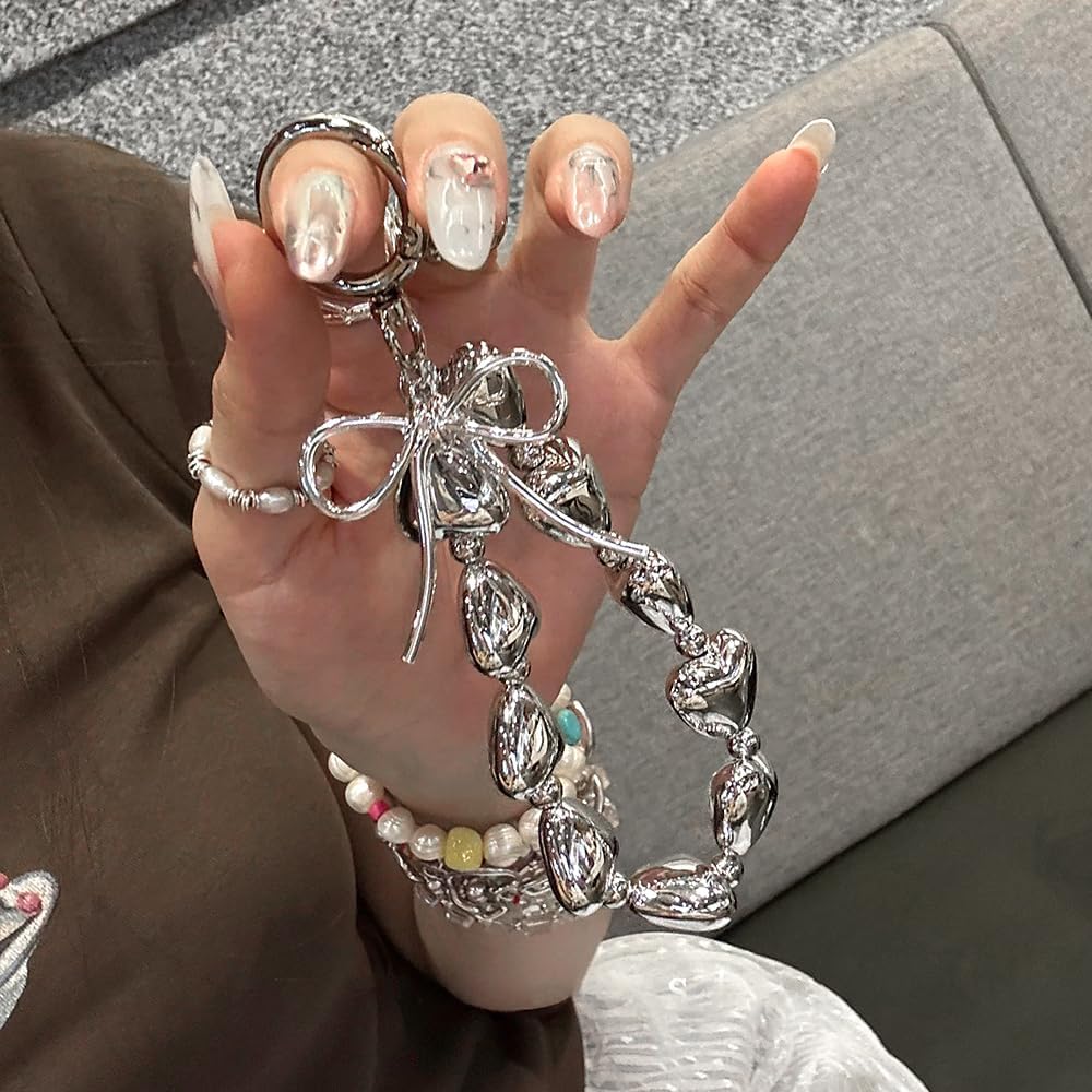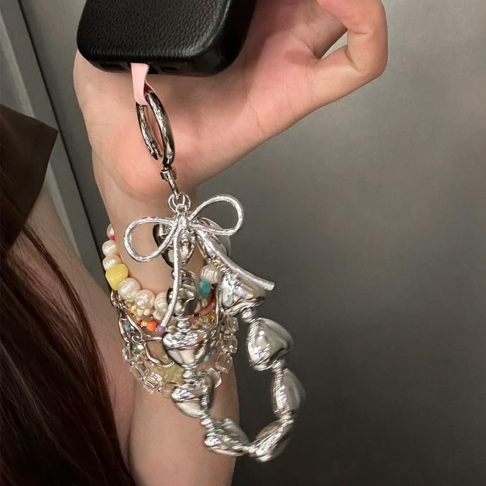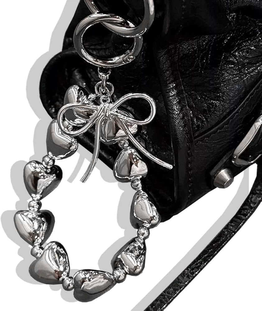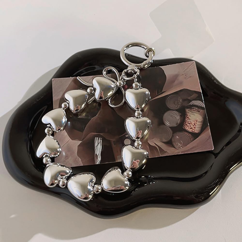 • 【Silver Heart Bow Keychains】You will get a shiny silver heart shaped beaded keychain with a bow pendant, featuring a minimalist design and fashionable versatility