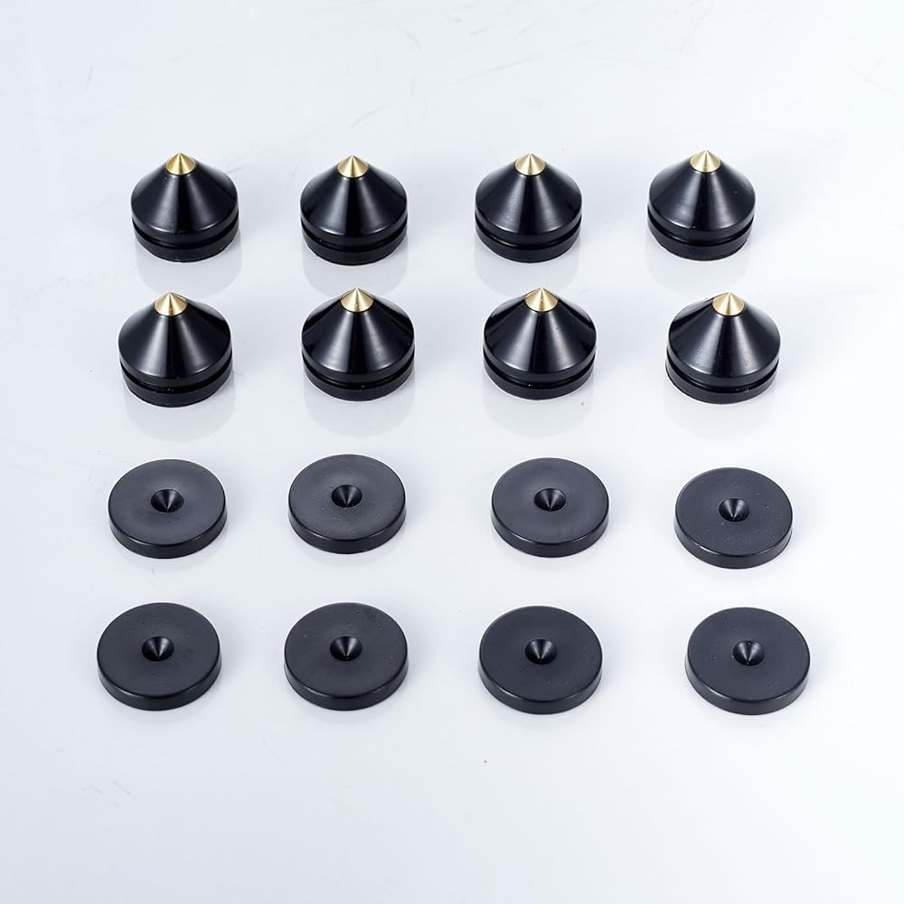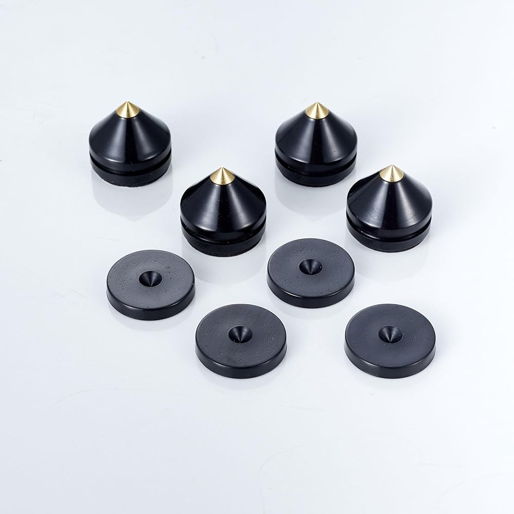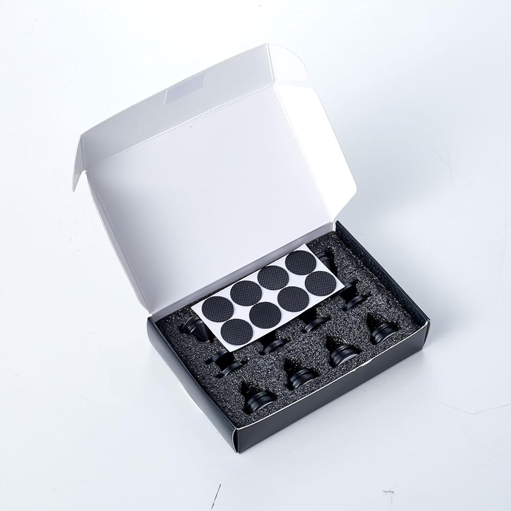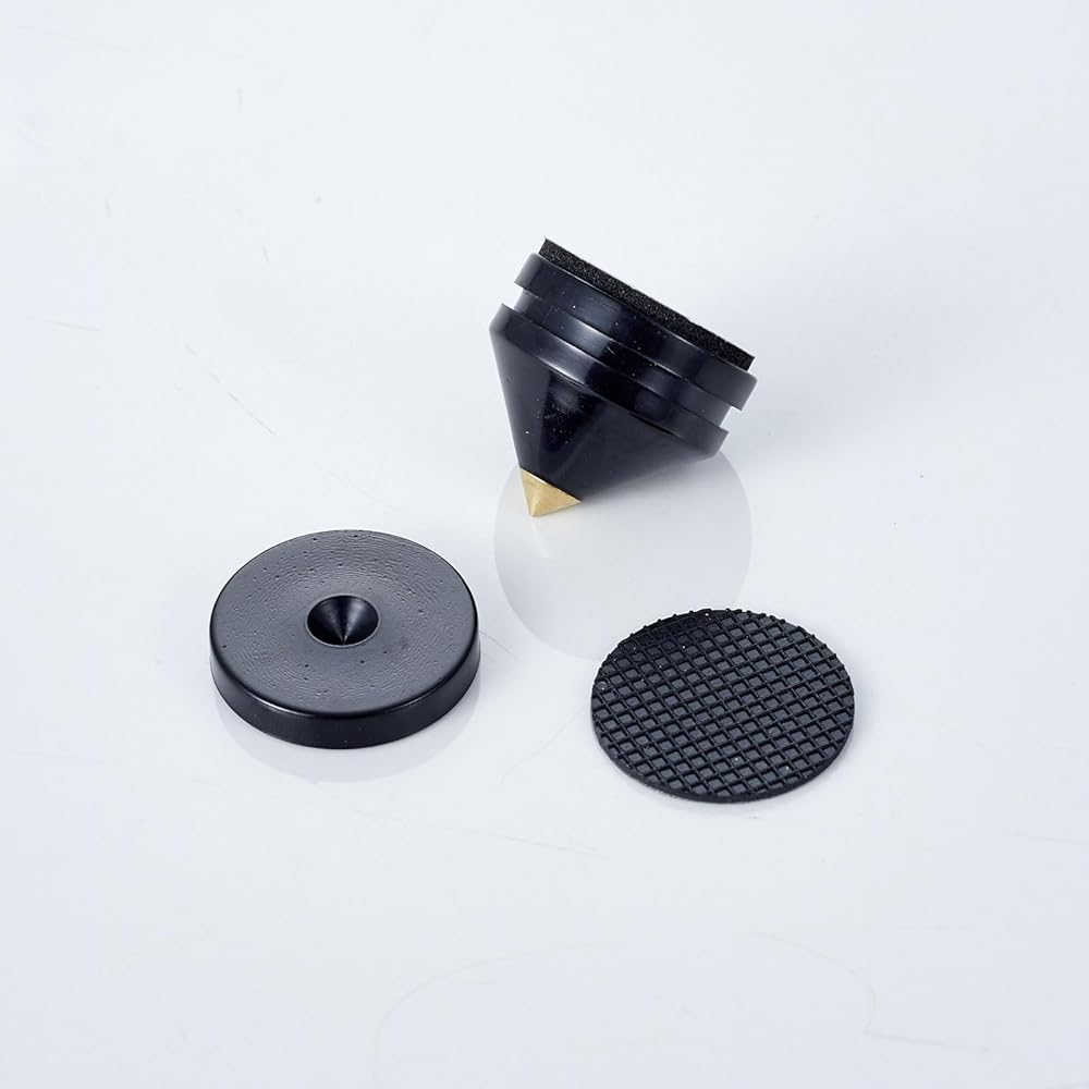 مستقر وقوي - امتصاص الجهير المصنوع من ABS و AS ، يضمن أفضل الاستقرار ، وصنعة عالية الجودة للحياة الطويلة. الحد الأقصى لسعة الحمل 300 كجم لكل 4pcs يناسب معظم مكبرات الصوت والأجهزة.